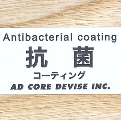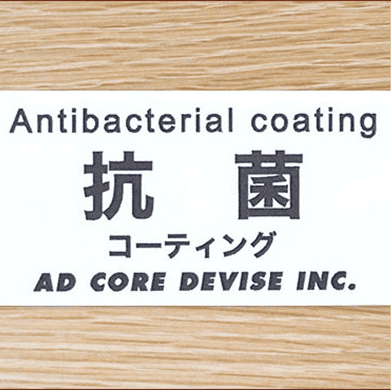 エーディコア·ディバイズの木製品に施しているポリウレタン塗装のトップコートに高機能抗菌剤を配合し抗菌性を持たせました。規格色のカラーや表面の仕上がりには影響なくご使用いただけます。耐久性・耐油性・耐薬品性にも優れているポリウレタン塗装に加え、塗装膜の中に均等に分散されたナノサイズの抗菌剤が、成分を溶出することなく効果を発揮し続けますので安心してお使いいただけます。