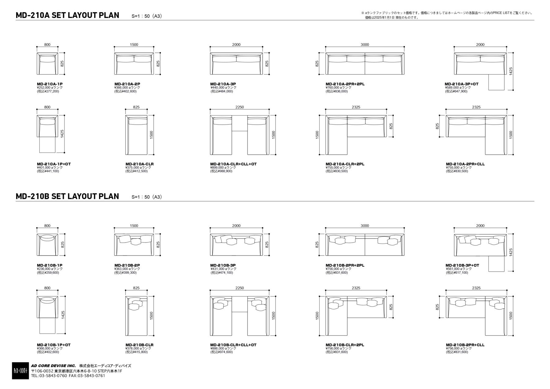 MD-210B-1P W800・D825・H650(SH400) MD-210B-2P W1500・D825・H650(SH400) MD-210B-3P W2000・D825・H650(SH400) MD-210B-2PR/2PL W1500・D825・H650(SH400) MD-210B-CLR/CLL W825・D1500・H650(SH400) MD-210B-OT W600・D600・H400 ※床からフレームまで160mm