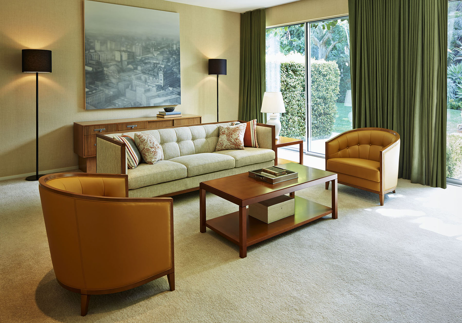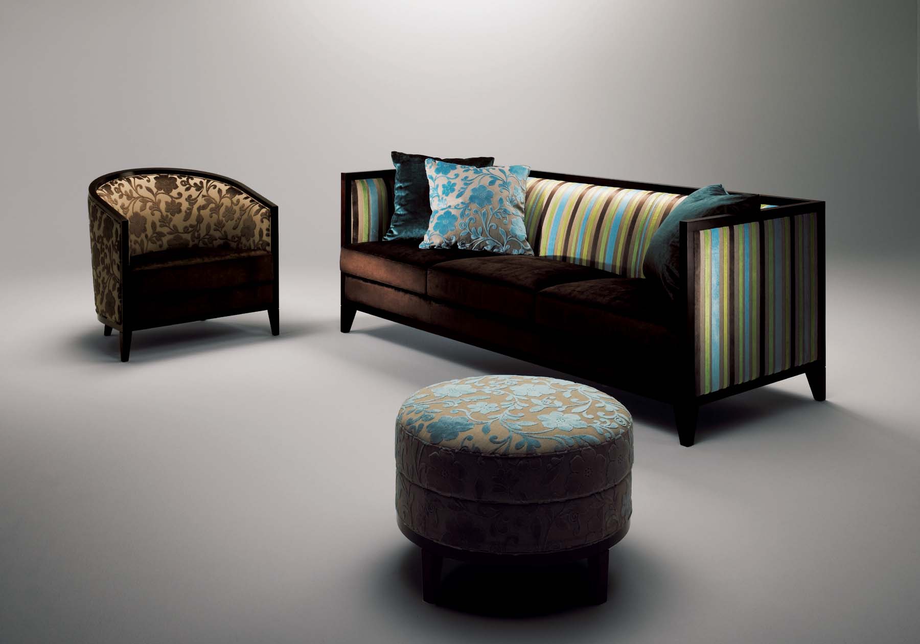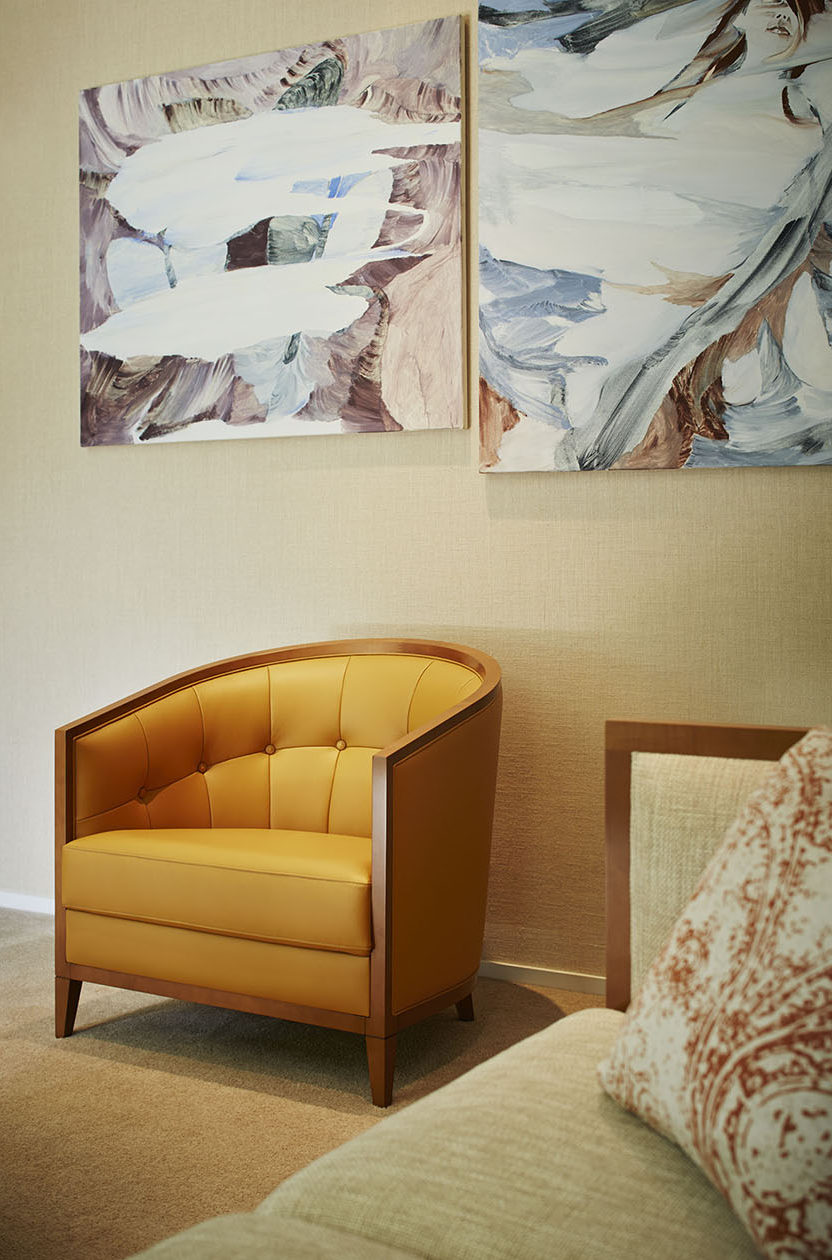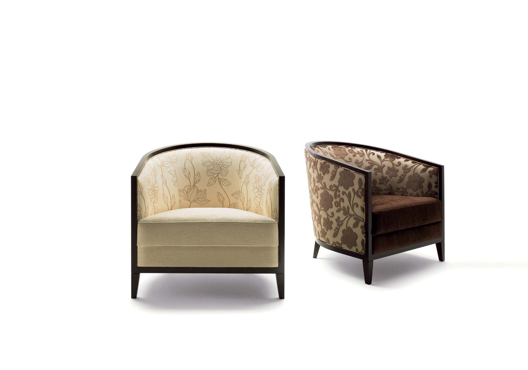 1930年代のアールデコスタイルをネオ クラシコ流に現代によみがえらせました。包み込むような馬蹄形の背にくるみボタンでアクセントをつけ、座にコイルスプリングを使用。Bタイプはファブリックの華やかさを表現できるようにシンプルに仕上げました。アーム部にはメープル材を使用し、永くお使いいただける重厚な座り心地のラウンジチェアです。