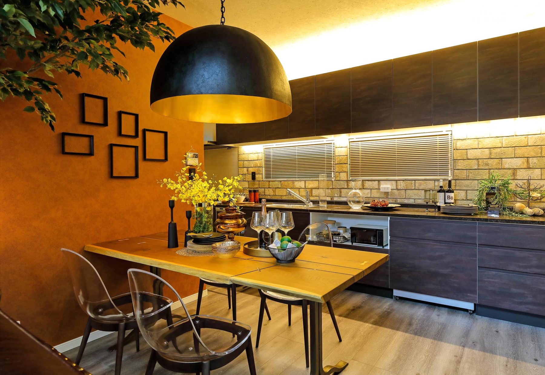 「ワイルドボタニカル×フレンチアールデコ」をテーマに、近年トレンドとなっているボタニカルなリラックス空間をヴィンテージMIXでワイルドに演出しています。アールデコの要素をプラスした、シックでクールな大人のリラックススタイルです。