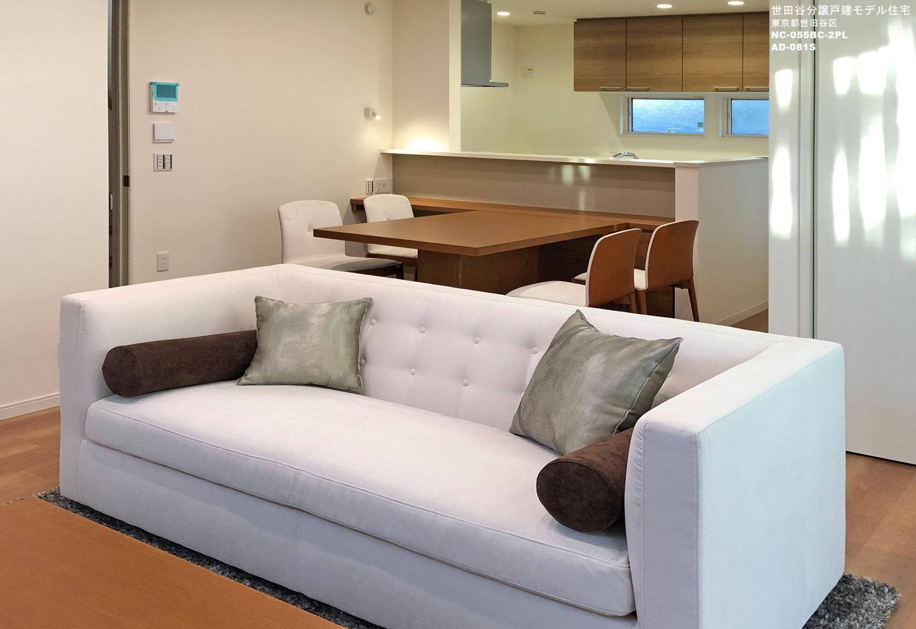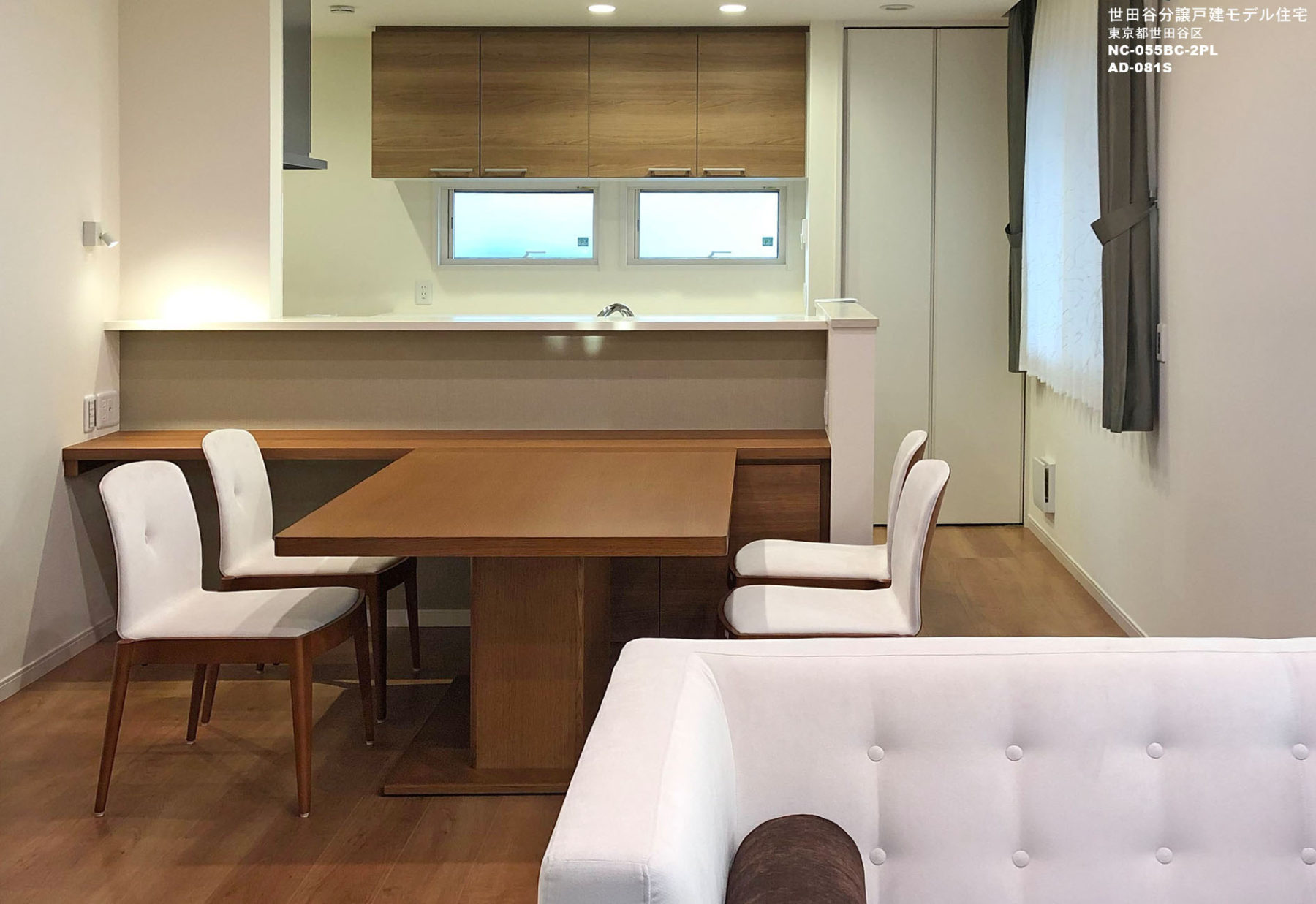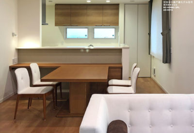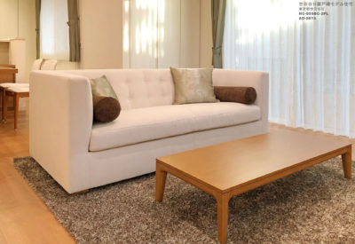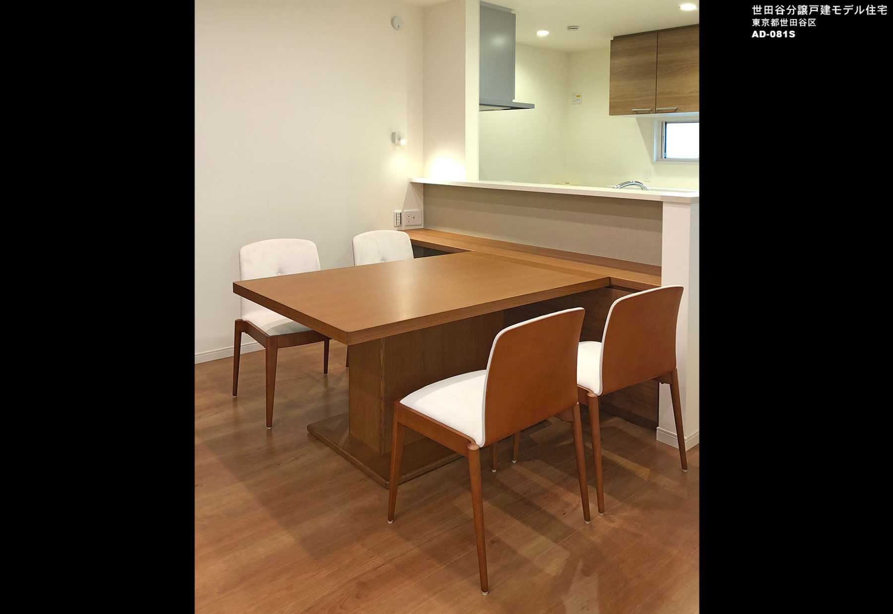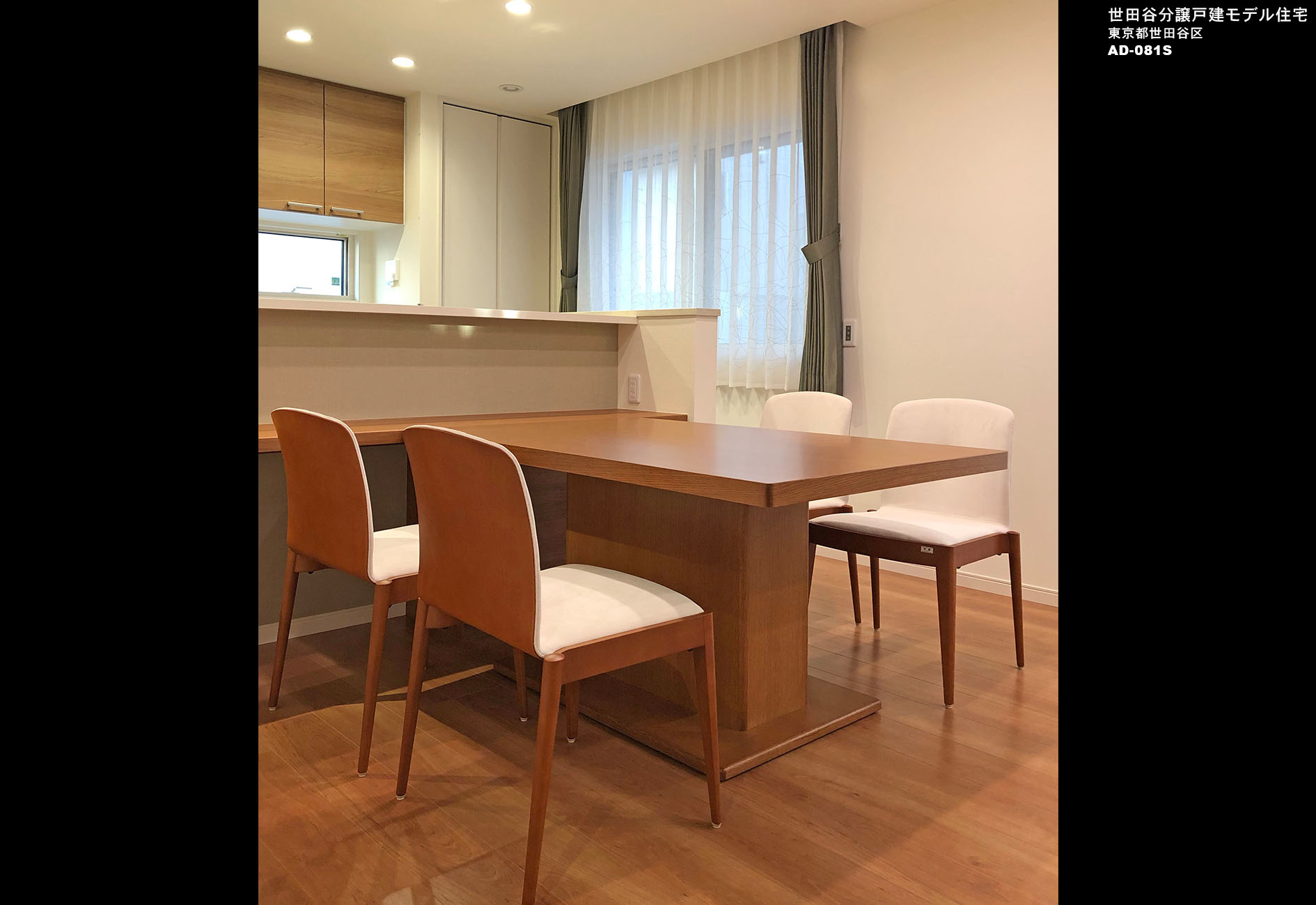 都心部の閑静な住宅地に計画されたモデル住宅です。建具造作ミディアムカラー配色は年代問わずの人気カラーです。色を併せて家具もカラーコーディネートを行い、ラグジュアリーで落ち着きのある空間を目指しました。