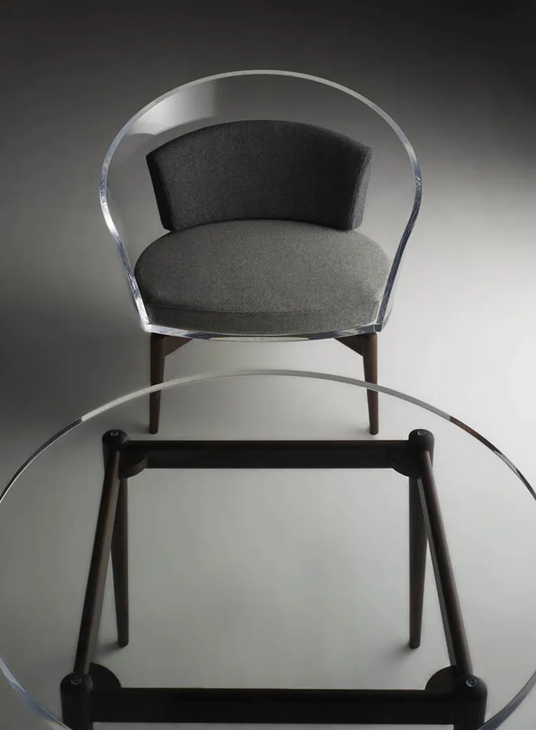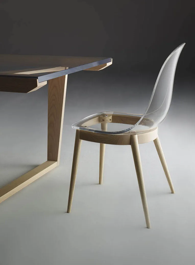 優美で透明なアクリル樹脂と暖かい木製素材の出会いが、新たなデザインを生み出しました。