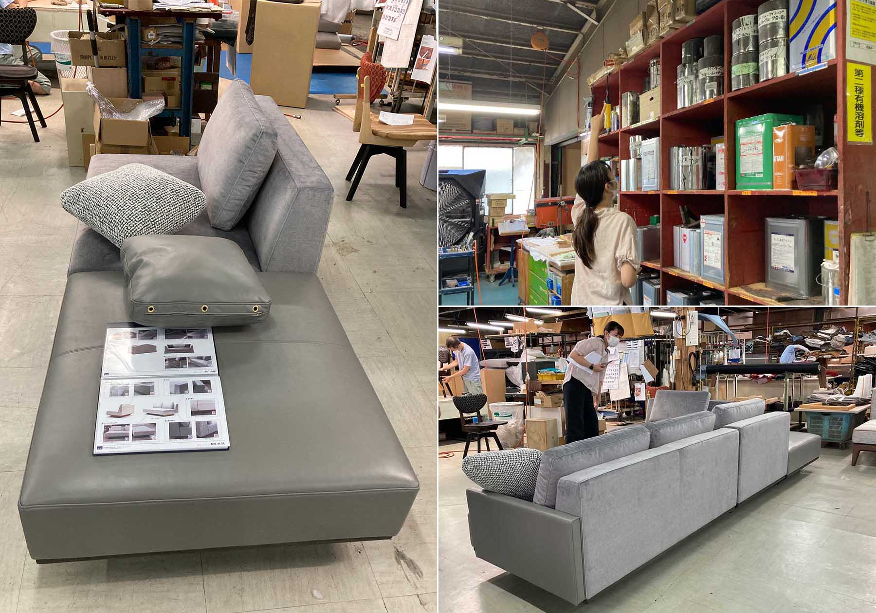 久しぶりの訪問となった今回の訪問ですが、決算期の棚卸しや製品の品質に関する事案など、多岐にわたって打ち合わせがありましたが、直接お伺いできるようになって担当者の方と直接お会いしてお話ができることがある意味一番の目的でもありました。新型コロナ感染が発生した時期から工場訪問が出来なくなったため、ソファやテーブル工場での製品仕上がりチェックをリモートで画像のやり取りで行なって来たのですが、今回久々に工場のスタッフの方と一緒に製品確認を行うことができました。リモートでの画像検品を行うようになって製品クオリティーは向上しましたが、現場で担当者と一緒に確認することにより、対面でのコミュニケーションの大切さを改めて感じることもたくさんありました。今後もリモートでの利点を生かしながら、現場にお伺いして工場の方とコミュニケーションをとりながら製品の品質向上を進めていきます。