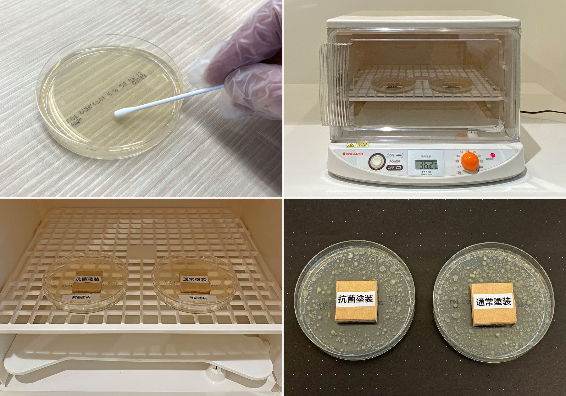 感染が広がり始めた当時、抗菌、抗ウイルス塗装の検討に入った際に、抗ウイルス塗装は認可の関係で採用するまでには時間がかかりそうでしたが、抗菌塗装は2003年頃に感染拡大したSARS(重症急性呼吸器症候群)の感染対策として塗料メーカーが開発した資材が存在していました。しかし、SARSの感染が収束し、日本国内への影響がほとんどなかったことから、抗菌塗装が活かされることはありませんでした。新型コロナウイルスの感染が広がりだした当初も、感染対策に採用するブランドもなく、家具を生産する工場でも抗菌塗装への関心はとても低いものでした。当社は、抗菌塗料のスペックやエビデンスを確認しすぐに対応を決定しました。抗菌作用を実際に自分たちで確認するため、培養器を購入して社内で抗菌試験を行い、菌繁殖の抑制状態や通常の塗装と耐性に違いがないことも確認し、2020年9月には全ての製品に抗菌塗装を標準仕様に変更しました。採用した当初は、抗菌塗装の効果や認知度も低かったため、お客様に感染対策への有効性をお伝えして徐々に広めていきました。(除菌スプレーや除菌加工は効果的な時間が制限されますが、抗菌塗装は塗装の塗膜が摩耗してなくならない限り効果が持続するなどはその一例です)