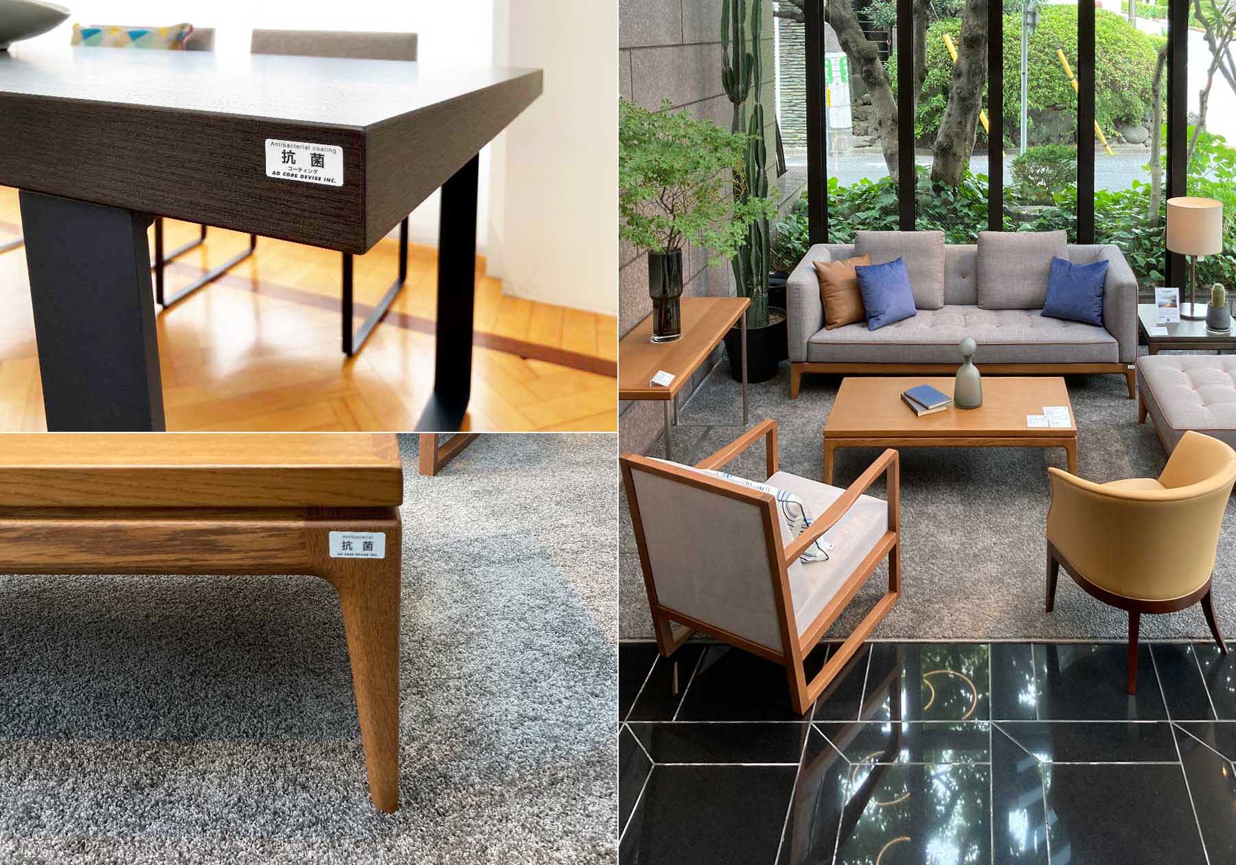 エーディコア・ディバイズの製品は全て国内で受注生産しているため、全製品の抗菌塗装への仕様変更も早期に実現することができました。これから新型コロナウィルスの感染が収束した後でも、インテリア空間での感染対策は、スタンダードな仕様になってくると思われます。当社の製品は全て抗菌塗装が標準仕様になっていますので、家具をお使いいただくだけで抗菌対策になります。さらにオプションとして感染対策を進めた「抗ウィルス塗装」もご用意っしました。他にも椅子やソファ用の家具用張り地の抗ウィルス加工、日本で初めて天然皮革に抗ウィルス加工を施した抗ウィルスレザーの対応も行なっています。より安全で安心できるインテリア空間にぜひご検討下さい。皆様からのお問い合わせをお待ちしています。(開発 武田伸郎)