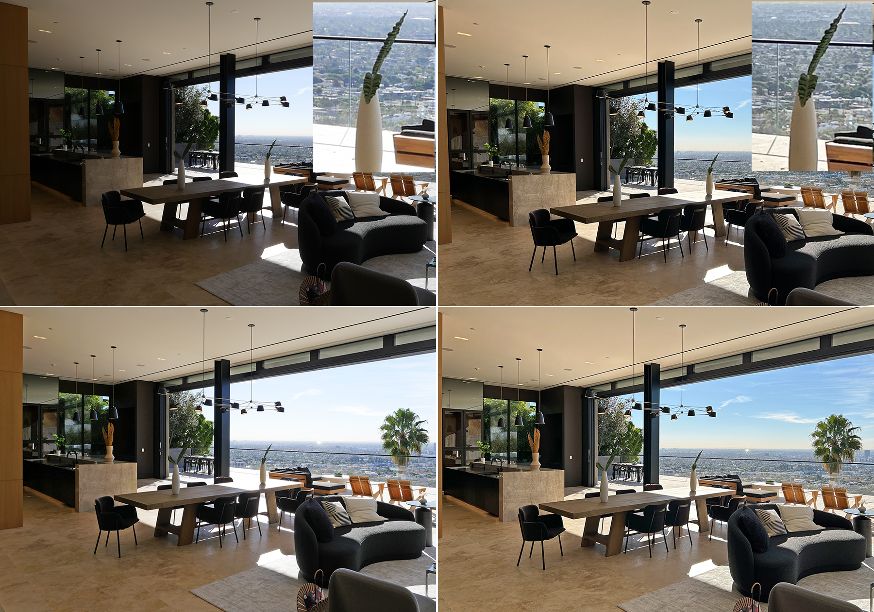 私のインテリア写真撮り方セミナーに参加の方はご存知だと思いますが、写真はピントさえ合っていれば多少のパースの修正や濃淡の補正は可能で、PhotoshopなどのPC用の写真編集ソフトだけでなくスマートフォンに付属している無料ソフトでも補正は簡単にする事ができます。最近ではiPhoneなどスマートフォンのカメラ機能が進化して見やすい写真に自動的に色補正をして撮影ができるようになりました。しかし、気をつけないといけないのが、スマートフォンの画面で見やすく良く見えるような味付けになっていて、多くの場合メリハリが強い写真になっている事です。それは雲のある空の風景を撮影すると分かりますが、メリハリがありドラマチックな写真になり自分が上手になったように思う事です。また、綺麗に見える写真でもパソコンに入れて原寸大で見ると画像が荒い事も認識する必要がります。スマートフォンの明るい小さい画面の綺麗さに騙されています。