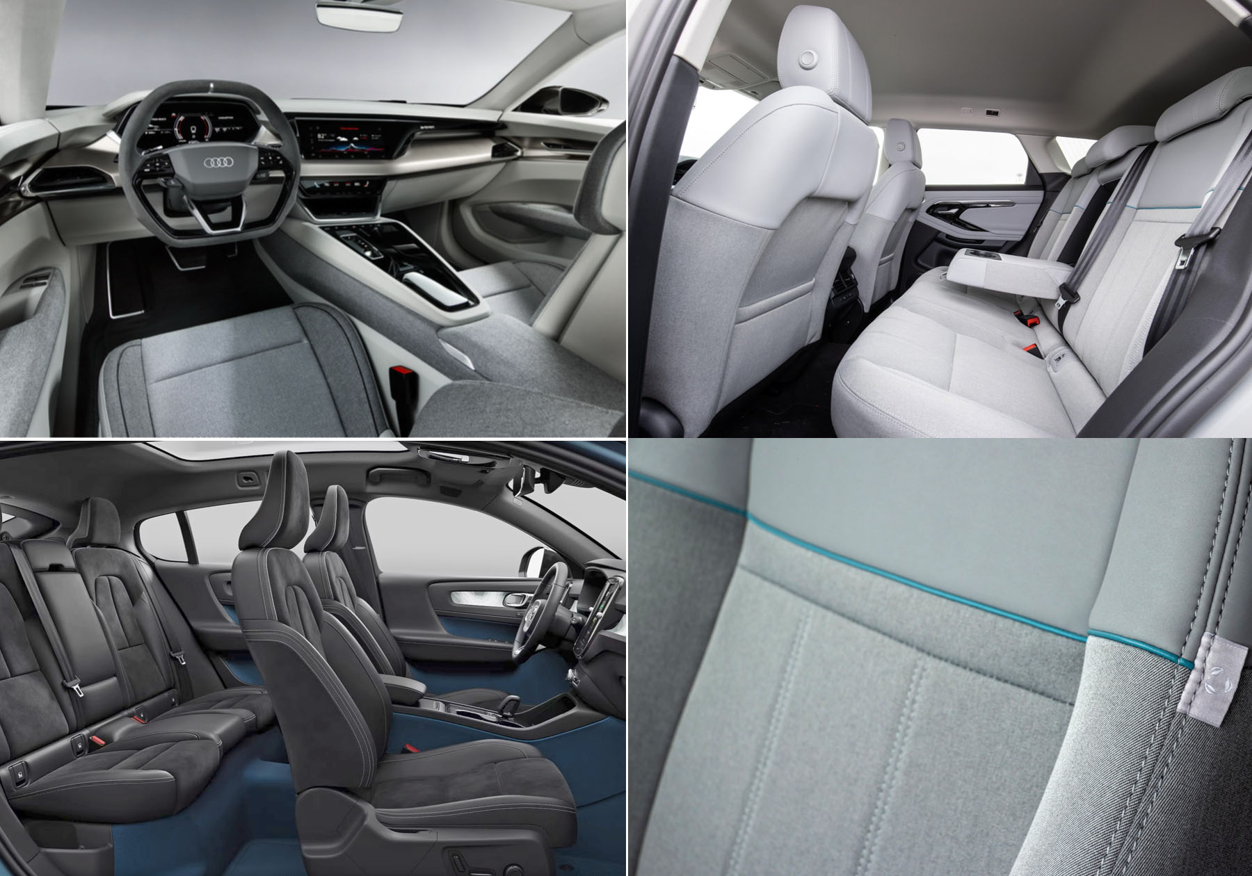 革のなめす技術と表面塗装の耐久性が上がり、高温多湿が多い車のインテリアにも革素材が使われるようになり、本革が高級車のインテリアの代名詞になってきました。滑りやすい革も耐久性の上がった革にパンチング穴で通気性を持たせ、滑りやすかった表面を滑りにくい仕上げにして使えるようになった結果です。上位モデルでは、メルセデスはナッパレザー、BMWはメリノレザーと言われるスタンダードの革より手触りの良い上質な革も用意されています。フェラーリやランボリギーニのようなスーパースポーツカーには滑りにくい素材としてアルカンターラ(ウルトラスエード)と言われる人工スエードがシートだけでなくハンドルにも使われますが、最近では動物愛護や革製造時の公害問題の観点から自然素材のファブリックや人工レザーを使用する車が増えてきました。電気自動車やエコロジーを謳う輸入ファミリーカーが多かったのですが、最近では革素材が標準だった高級車の世界でも環境問題から変化が見られるようになりました。