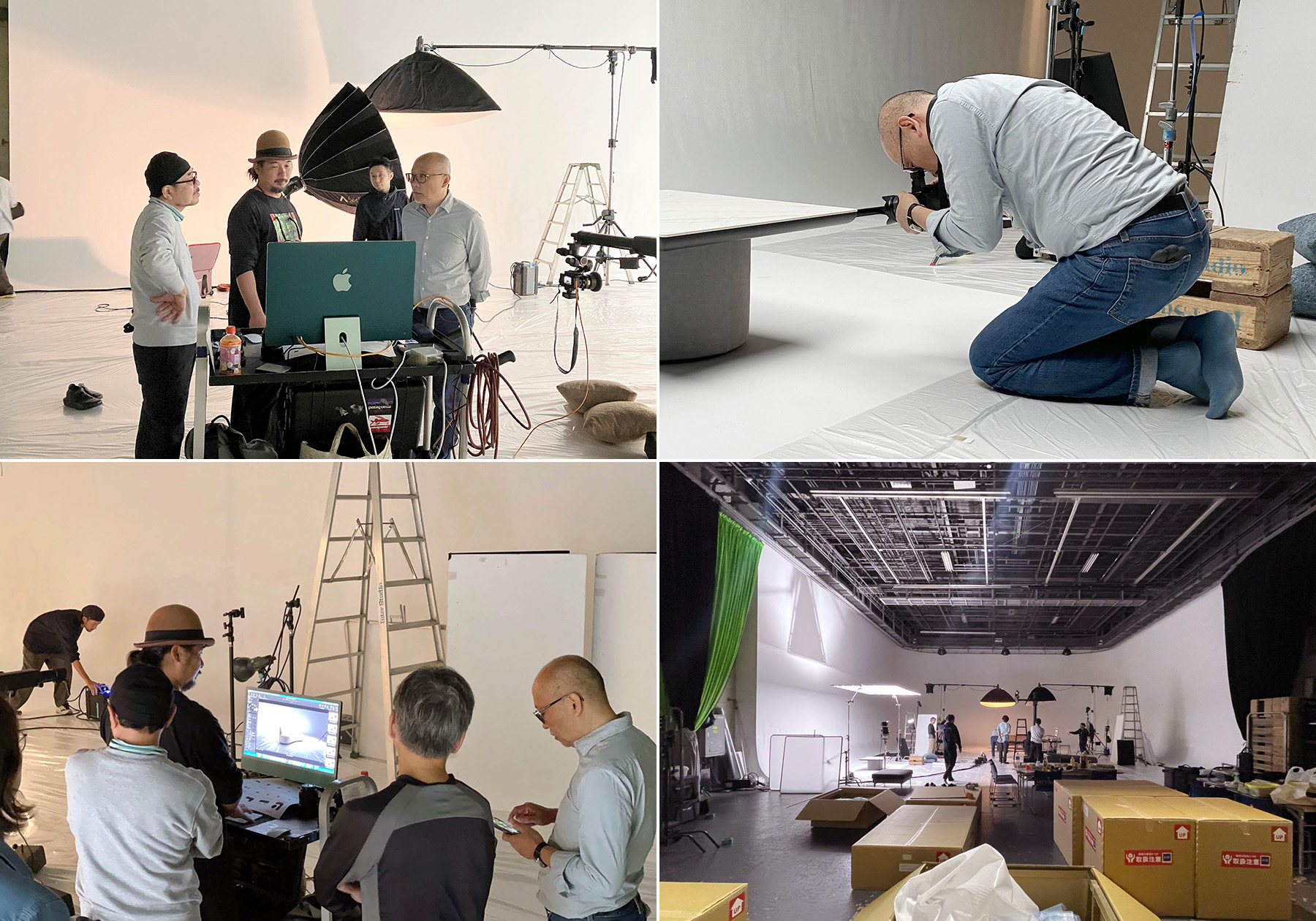 このところ利用している神奈川の撮影スタジオは、トラックがスタジオの入り口まで着けることができる利便性の良いスタジオです。スタジオが建物の奥だったりエレベーターでの移動があったりするとそれだけで大仕事になり時間を取られてしまいます。このスタジオはバックヤードも広いので、家具の撮影ではとても助かります。今年はスタジオ撮影を1日しか取っていないので、撮影カット数からすると時間との勝負です。製品の開梱から製品の設置、アングル決めの製品移動をしながら全員協力体制で粛々と撮影を進めていきます。ここ最近の手順として、瀬戸はメインの撮影以外の、製品のディテールカットの撮影を行います。その数なんと15カット。メインの撮影ディレクションを行いながら、手持ちのカメラで撮影です。メインの撮影では、スタート直後のセッティングに時間がかかりましたが、イメージ設定を決めてからは怒涛の進行。撮影終了後の梱包時間まで含めても撤収時間前に余裕で終了!!こんなに早く終わったのは記憶にありません。撮影終了後にトラックに製品を積み込み、明日は勝負のロケ撮影です。