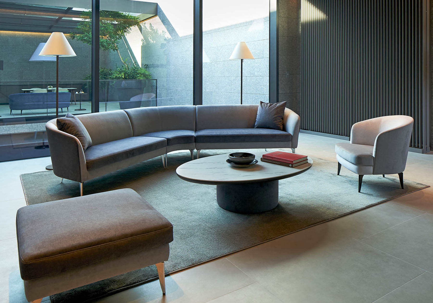 リビングルームは、家族が集ったり友人を招いたり一番くつろげるスペースとして、コミュニケーションの中心の場となることが多いと思います。2人掛けや3人掛けのソファはもちろんシステムソファなどで大きくレイアウトし大人数で利用する場合に、用途に応じてリビングテーブルを利用することをお勧めします。今回は2024 NEW MODELで発表したMD-3212のバリエーションにもある円形のリビングテーブルに焦点を当ててご紹介したいと思います。