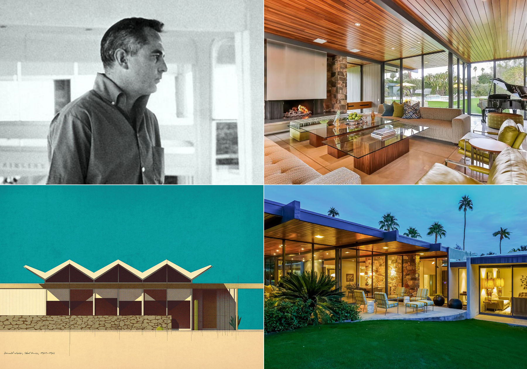 1950年から起こったモダンデザインブームで、多くのカリフォルニアスタイルの建築が生まれました。また、復員兵が生活に戻るために多くの住宅が必要になり、多くの建築家も必要とされました。その中に第二次世界大戦で従軍し日本建築に影響を受けた建築家が多くいます。その1人がドナルド・ウェクスラーで、パームスプリングスに多くの建築を残しました。ウェクスラーはパームスプリングスに空港や銀行などの公共建築を手がけ、俳優など有名人の別荘の設計も行いました。1964年に設計した往年の歌手ダイナ・ショアの邸宅を2016年に俳優のレオナルド・ディカプリオが523万ドルで購入した事でウェクスラー建築が再認識される事になりました。ウェクスラーは1926年にサウスダコタ州で生まれ、第二次世界大戦で海軍に従軍し日本にも滞在し、戦後アメリカに帰国し1950年ミネソタ大学を卒業、その後、建築家リチャード・ノイトラ事務所に入所、その後インテリアデザイナーのウィリアム・コーディ事務所で働き、パームスプリングスで設計事務所を設立しました。