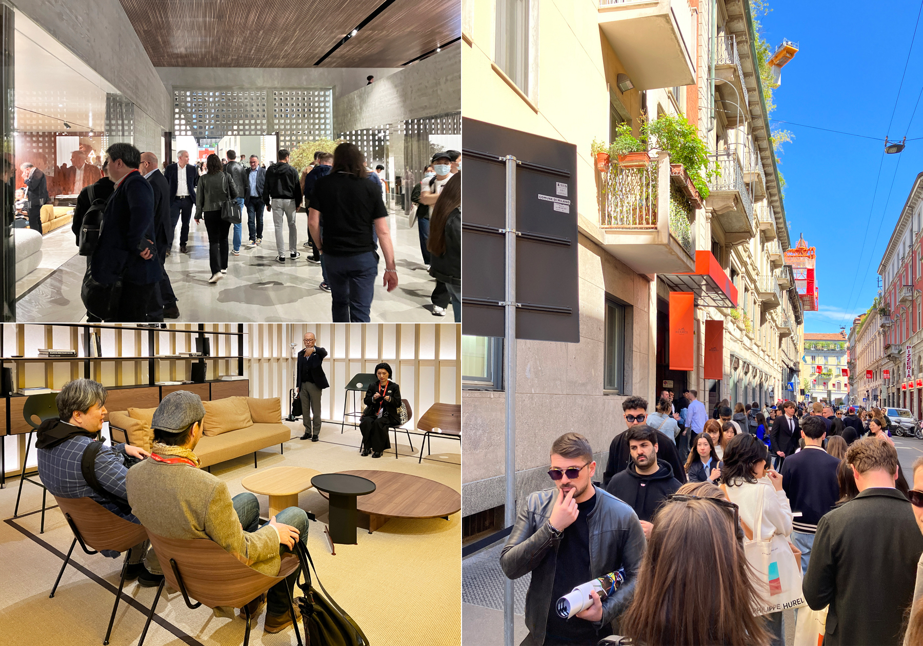 ミラノサローネを視察された方なら納得いただけると思いますが「サローネを見るなら下調べが必須」です。フィエラ会場はもとより市内の様々なエリアでイベントが開催されているので、限られた時間内ではとても見て回ることができません。例年は見やすい場所のフィエラ会場入り口エリアに家具のメインブランドが集中して出展していたのですが、今年は主要ブランドが会場の一番奥になりました。人気のブース以外にも人が流れるようにとの策だと思いますが、そんな会場内を歩くだけでもあっという間に時間が過ぎてしまいます。見逃せないブランドは長蛇の列で入場待ち状態なので、よほど効率を考えて回らないと十分な視察は難しいのですが、今年も瀬戸のリサーチで事前情報を十分にキャッチ!渡航前に必要な入場登録を済ませ、フィエラ会場の移動からブースを回る順番、市街地エリア視察のコースも設定。混雑するブースの時間も予測しながら3日間、しっかり見て回ることが出来ました。昨年から増えた事前登録制の入場方式を取った人気のイベント会場では入場するまで2時間も並ぶ事もあったようで、あまりスムースではなかったように思います。顧客の囲い込みと出展者側の効率化を図るためのシステムと思われますが、事前登録 + 会場での再登録が必要だったり、会場前で登録チェックに手間取って混乱したところもあったので来年は改善してほしいところです。