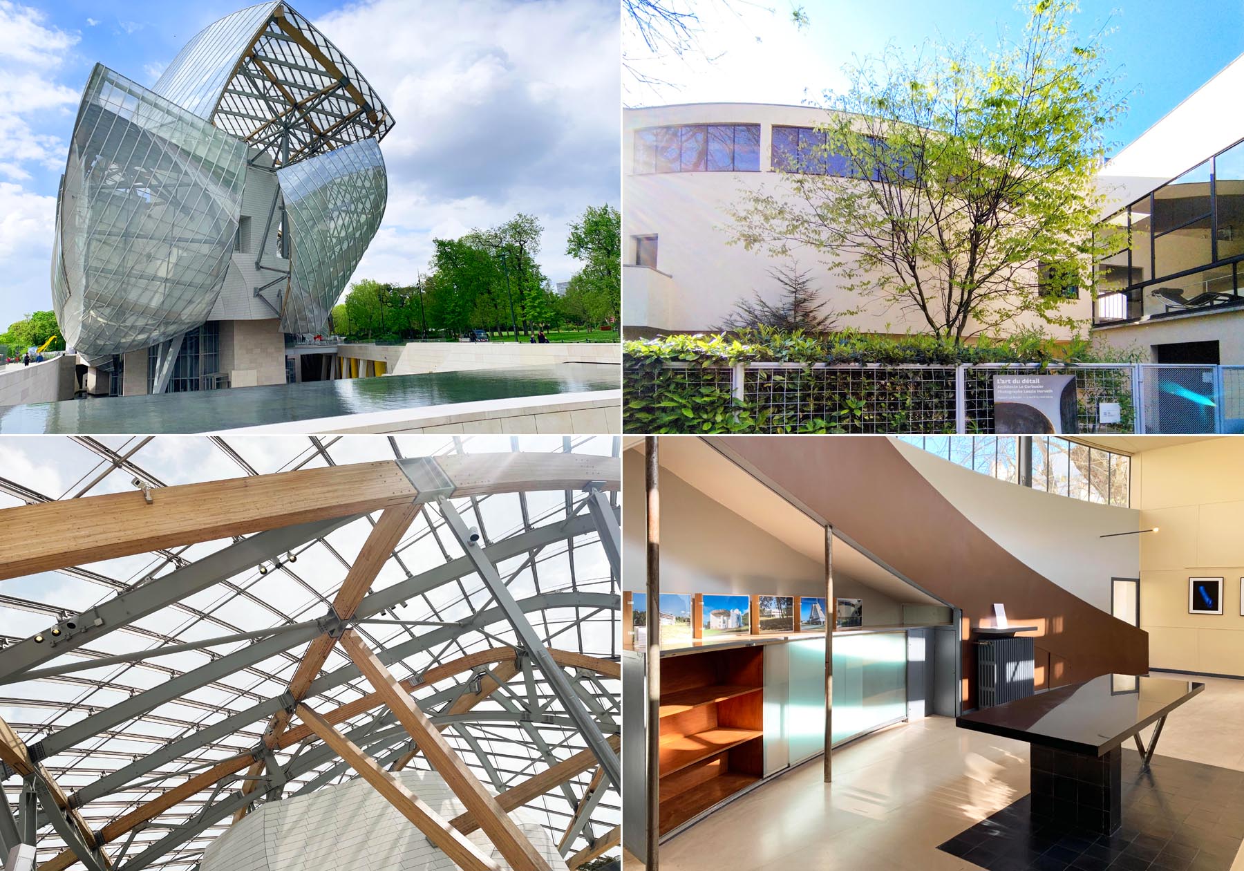 パリのインテリア視察では、ルーブルやオルセー美術館、世界で最も美しいステンドグラス建築と言われるサント・シャペル教会などを見て回りつつ、人数限定の完全予約制でなかなか見ることの出来ないルイヴィトン美術館とコルビジェの「ラ・ロッシュ・ジャンヌレ邸」を視察してきました。ヴィトン美術館はF・O ゲイリー設計の2014年にオープンした美術館。ゲーリー氏の建築といえば、LAでカタログ撮影を行ったディズニーコンサートホールにとても馴染があるのですが、ヴィトン美術館はステンレスのメタリックな外観のディズニーコンサートホールと比べて、自然に溶け込むような大らかな印象の建築に感じました。ガラス、コンクリート、スチール、そして木材と、異素材の組み合わせが柔らかい雰囲気を醸し出しているのかもしれません。市内から移動した他のスタッフとは別に、僕はブローニュの森を通って美術館へ向かったのですが、森から生えてきたように見えるこの建物は、巨大な帆船のようにも見えました。館内には建設する際の施工技術をモデルや動画によって詳しく説明していたのですが、この建築を覆っている1.5mX3m のガラスユニットを、3.600枚・全て異なる形状に曲面加工して全体を覆っているのです。その精緻さと労力に感嘆しました。