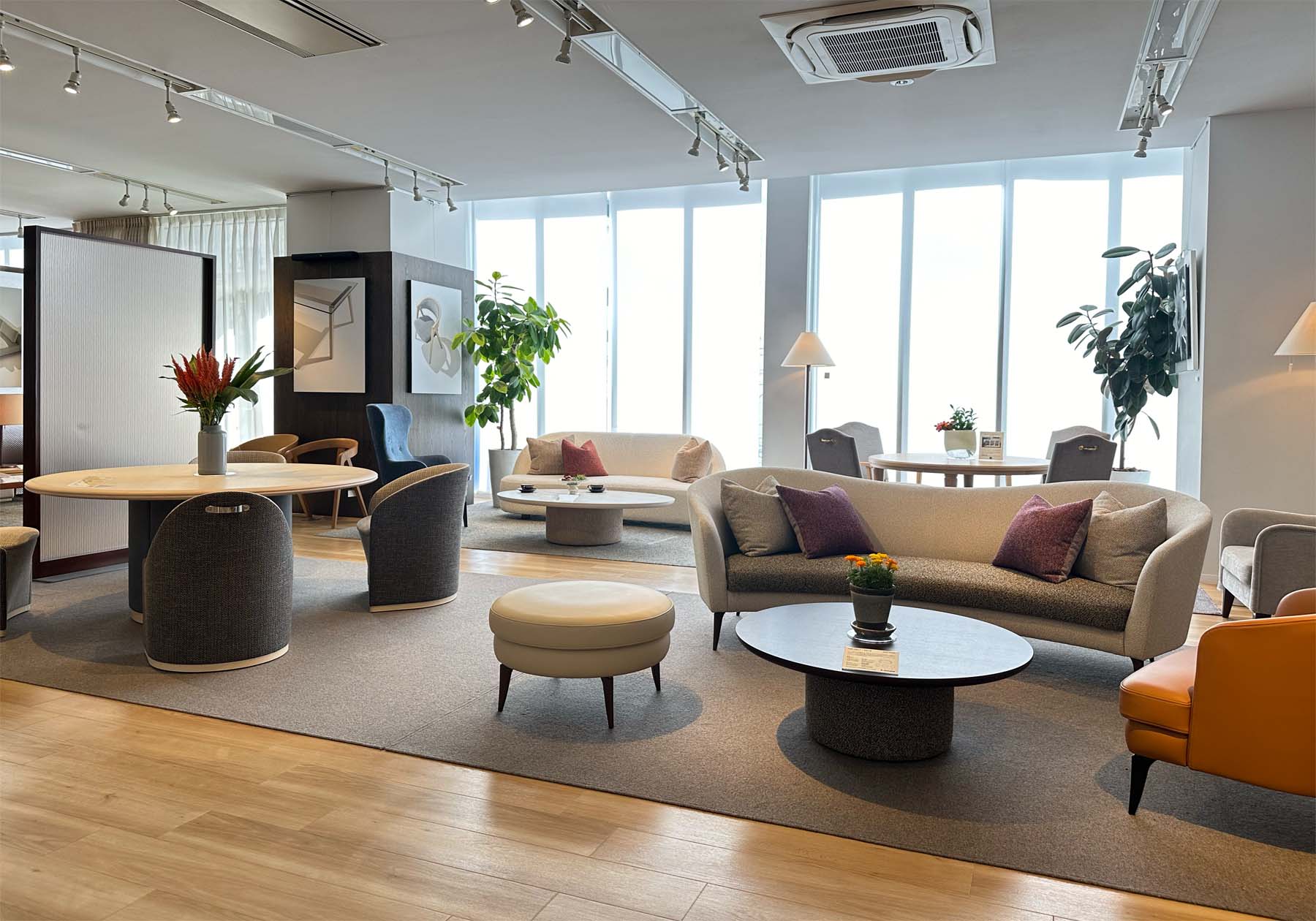 エーディコア・ディバイズの各ショールームではソファに合わせたファブリックを選んでクッションをお作りできます。「少しお部屋の雰囲気を変えたい」などご相談がございましたらショールームスタッフにお声掛け下さい。皆様のご予約・ご来場をお待ちしております。