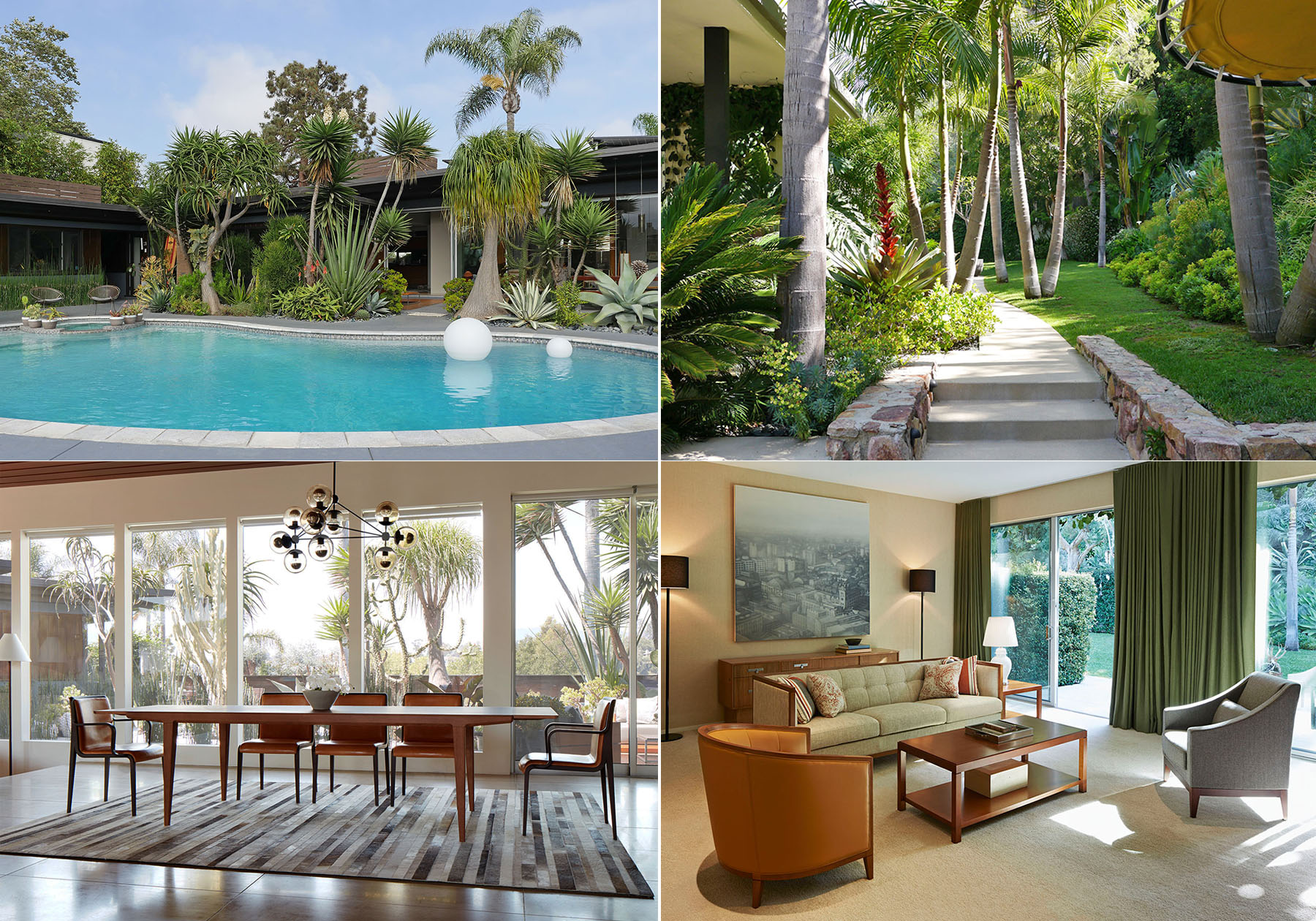 アメリカ西海岸でカタログ撮影するようになり、カリフォルニアスタイルの住宅は日本が起源で、モダン住宅に使われる大きく開かれる引き戸と庭と融合したインテリアは、日本建築からヒントをもらったシンドラーやノイトラがカリフォルニアスタイル建築として広げていった事を知りました。日本では部屋から庭を愛でるために大きく窓が開け放たれます。また、借景として風景や近隣の景色を取り入れて変化ある豊かな空間にします。取材で訪問したロサンゼルスの様々な住宅では庭と一体になったインテリアの住宅を沢山見ました。緑豊かな街並みにあるモダン建築は自己主張が強いと思われがちですが、実は他の住宅への借景になる為なのか、景色の一部になるように周りの植栽にも気を使う住宅が多いように思います。住宅の中のインテリアのしつらえも素晴らしいのですが、部屋に入ってインテリア空間から見える庭と景色と一体になった景色が素晴らしいのです。