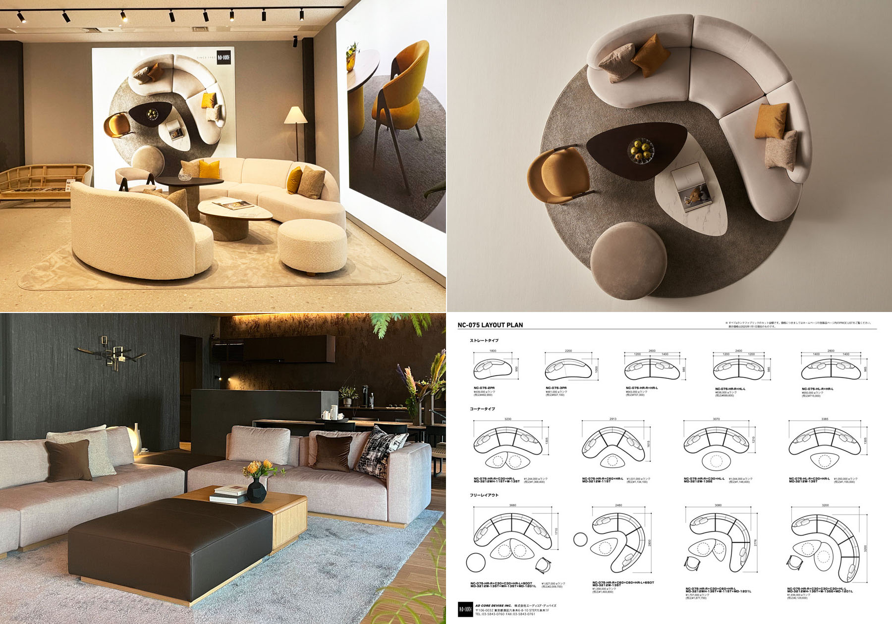 右下:075-MODELソファのレイアウト例。ホームページからご覧いただけます。