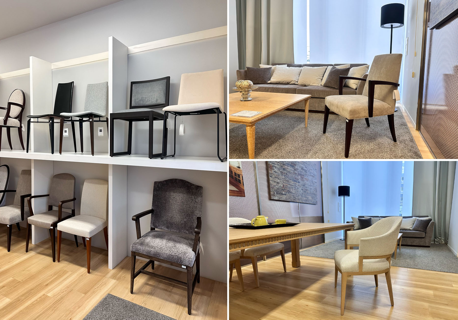 お一人目は、日本橋高島屋8階レストランでNC-020に出会ったご夫婦です。「とても座りやすかった」とショールームにご来場いただき、ご自宅に合わせて張地を選ばれたうえで、翌日に1脚ご購入いただきました。もう一件は、ご友人の家でNC-020に座ったことをきっかけにお問い合わせくださったご年配の男性です。ご来場が難しいとのことで、張地や木部のサンプルを何度かお送りし、ご自宅でゆっくり検討していただきました。NC-020は、脚先から背までなめらかに連続する曲線や、楕円形のフレーム断面が特徴で、どこから見ても柔らかく上質な印象を与えます。ダイニングだけでなくリビングにも馴染み、空間全体がワンランク上の雰囲気に変わるシリーズです。