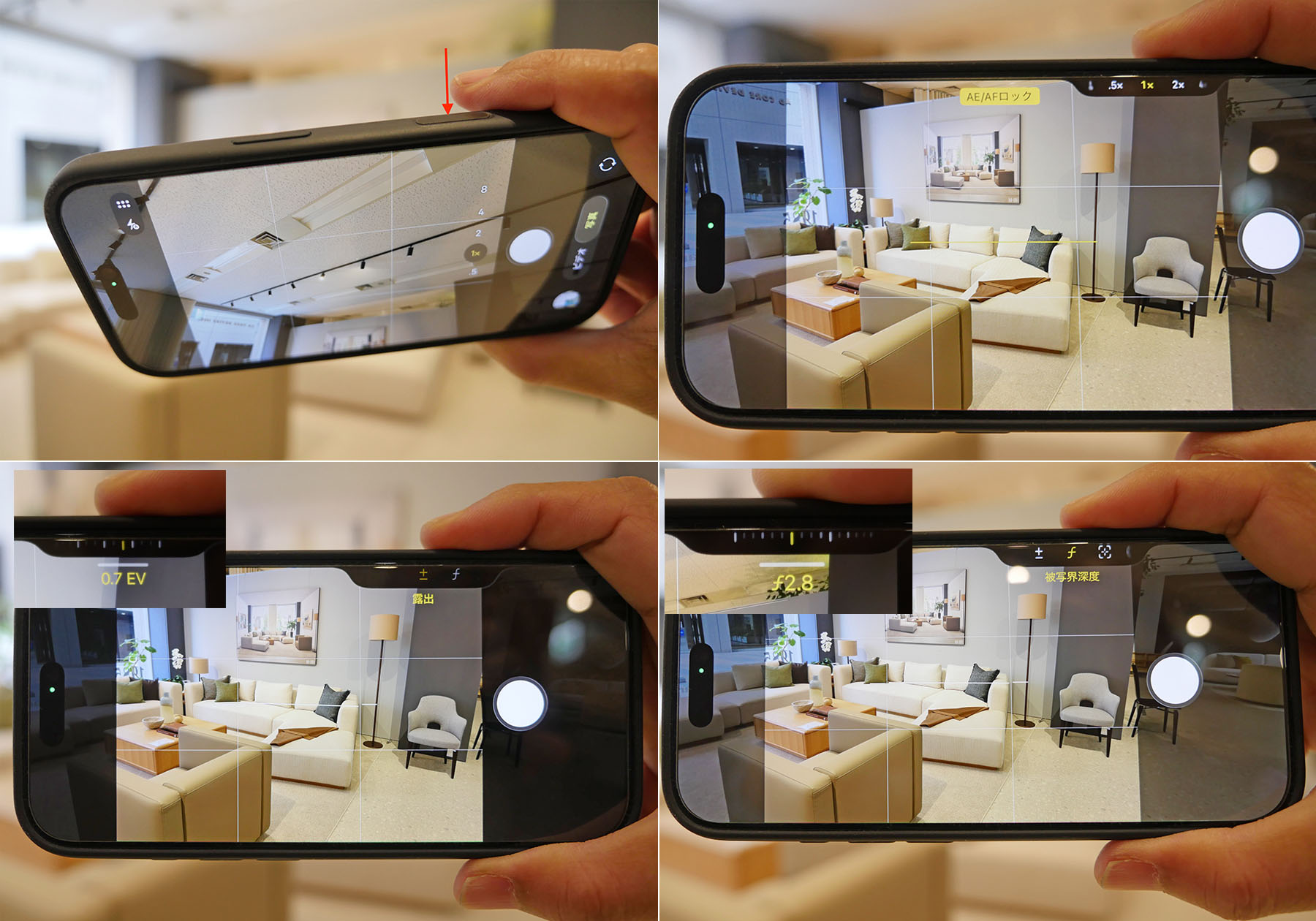 私自身取材でiPhoneの写真を使い始めたのは2019年のiPhone11 Proからでした。室内で撮影しても明るく広く撮影可能で、そのころ使用していたミラーレス一眼レフの写真と遜色なく、シャドウ部(影)の鮮明さやモニターやプロジェクターで見るとメリハリが効いた写真でインテリアには向いた写真が撮れるからでした。また、デジカメで周りが歪んでいた超広角もiPhoneでは自然に補正された写真になります。これは写真をきれいに見せるPC的な補正機能がiPhone自体にあるからです。今回手に入れたiPhone17のカメラ機能はより進化していて、一番驚いたのはカメラ用ボタンが付いたことです。iPhoneのインテリア写真セミナーでも画面の脇にある音量ボタンがシャッターの代わりになるので、それを使いましょうと話をしたことがありますが、左側に軽く押せるシャッターボタンが付いて、そのボタンがズームや被写界深度、露出やフォーカスロックまでできることです。もう、これ一台でいいやと思ってしまいました。