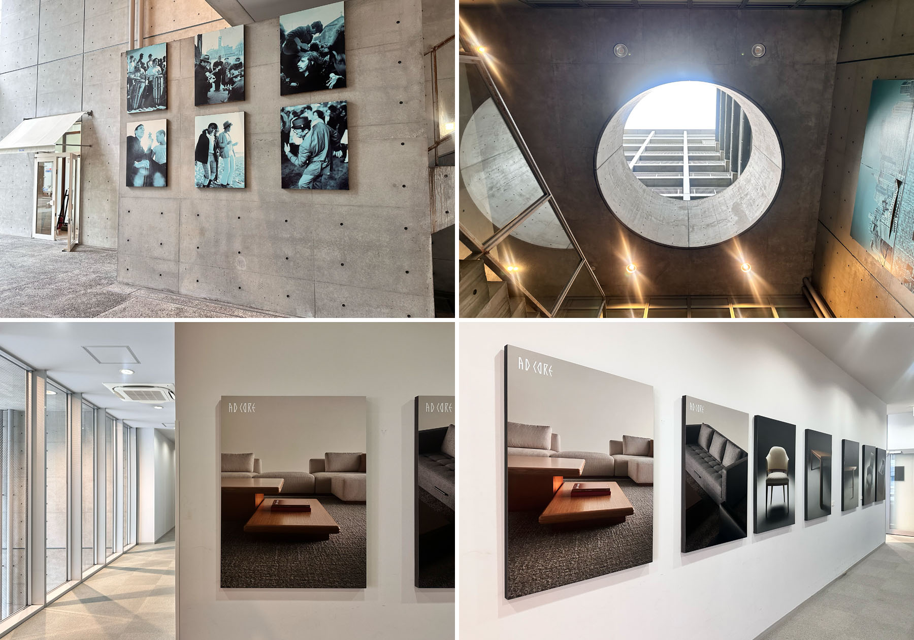 ショールームは、「SEDIC PLACE」の2階にございます。建築家・安藤忠雄氏が設計したコンクリート打ち放しの建物は、このエリアでも印象的な存在で、訪れるだけでも特別感のある空間です。館内の廊下にはフォトパネルを展示しており、エレベーターを降りてすぐ目に入るため、多くの方に足を止めてご覧いただいています。