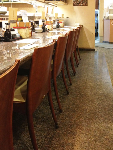 今回はセミナーのために訪れた北陸での事。北陸、特に金沢は美味しいお寿司が食べられます。敷居の高いお寿司屋さんだけでなく、気軽に食べられる回転寿司のレベルも高いです。その中でも好きなお店が「すし食いねえ」松任本店。10年くらい前に納品されたADCOREのブランドのSPADA/スパーダ▷が使われています。10年使用されているとは思えないくらいしっかりとして、まったくガタがきていません。元気な姿を見ると嬉しくなります。