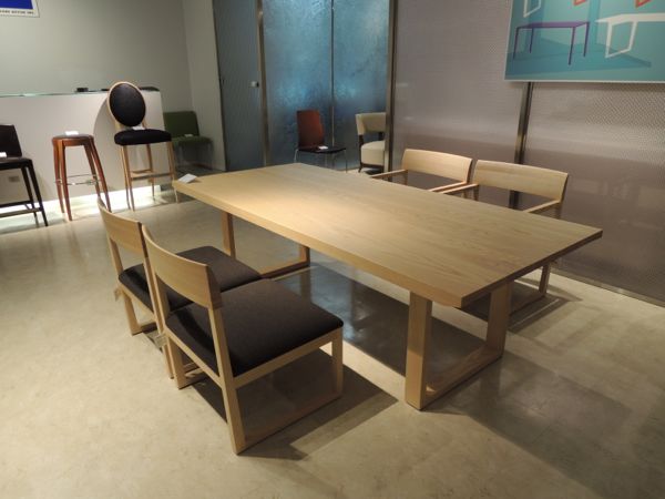 カバーリングタイプのソファでスチール脚が特徴的なMD-110 モデル。ショールームでは3Pソファとアームなし2LタイプをL型で展示していますが、離して別々の空間でもお使い頂けます。リビングテーブルを挟んで対面に設置したり様々なシーンにお使い頂けます。そして去年出た新作MD-107L &503 もセール対象になります。テーブルサイズがW2100と大きめですが、高さがH650でゆったりとソファ感覚でご使用頂けます。無垢材+うずくり加工が施され木目が本当に綺麗です。こちらは状態も非常に良くほぼ新品同様です。その他にも単品チェアは60〜80%オフ!革小物、クッション、照明まで対象になります。もちろんご紹介した以外にも各ソファ、ダイニングセットをセール価格にてご提供します。