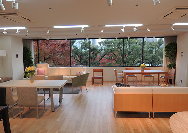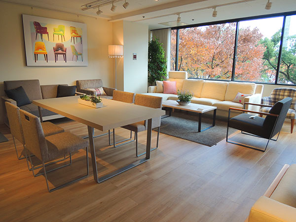 そんな風に感じている方は、是非エーディコア・ディバイズ名古屋・栄ショールームへお越し下さい。ショールームの扉を開くと窓一面にセントラルパークの木々が赤く紅葉しています。お起しいただいたお客様が「とっても綺麗で紅葉を独り占めできてずっと観ていたくなりますね。」とおっしゃっていました。私たちもほんの一息、ソファにかけて眺めるこの景色は本当に贅沢な瞬間です。