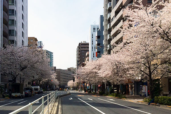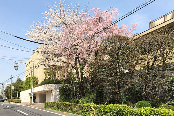 広尾ショールームの近くには明治通りの桜並木が広がっています。広い道路の両脇にずっと続く桜は圧巻です。日陰になっている恵比寿側は今が満開ですが、日が良く当たる広尾側は既に葉が出始めていました。今週末まで持ってくれると良いですね。もう一つの隠れたおすすめスポットがショールームの通り添いのマンションに植えられている桜です。枝垂れ桜とソメイヨシノが競うように咲き誇っています。濃いピンクの枝垂れ桜と淡いピンクのソメイヨシノのグラデーションがとても美しくて、毎朝見とれてしまいます。