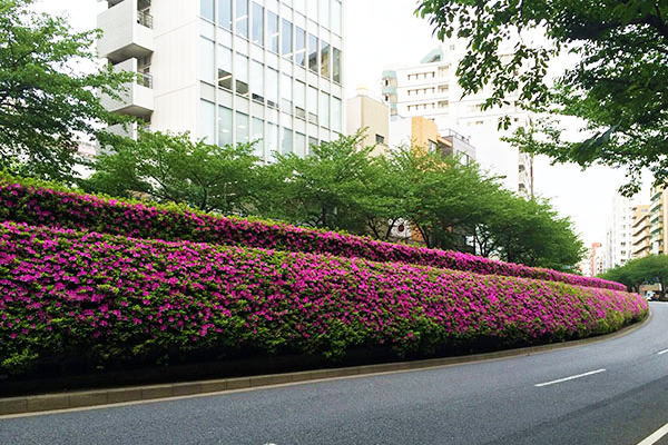 エーディコア・ディバイズ東京・広尾ショールームのすぐご近所にある明治通りの添いのツツジは、本当に見事で心奪われます。きれいに剪定され手入れが行き届いているので、更に美しさが際立っていました。