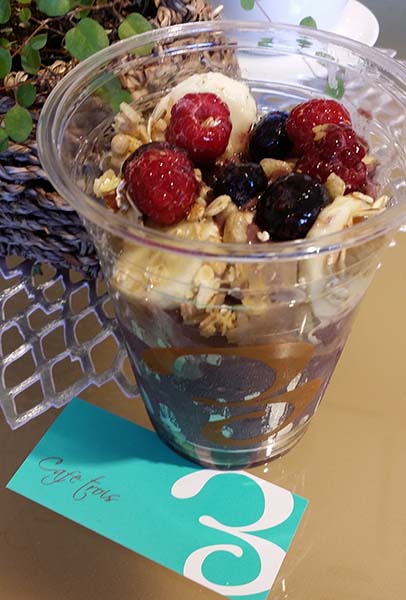昨年の4月にOPENした、久屋大通のcafe『trois(トロワ)』。ランチはオリジナルのホットサンドが人気で、夜のバータイムはカクテルやオードブルも豊富に用意されています。暖かい季節にはテラス席で気持ち良さそうにお食事をされてる方がたくさんいらっしゃいます。そんなtroisでずっと気になっていたテイクアウトの「アサイーボウル」をいただいてみました。アサイーの甘酸っぱさと蜂蜜の甘さ、シリアルのサクサク感が絶妙なバランスでこれからの暑い季節にも是非おすすめですよ!