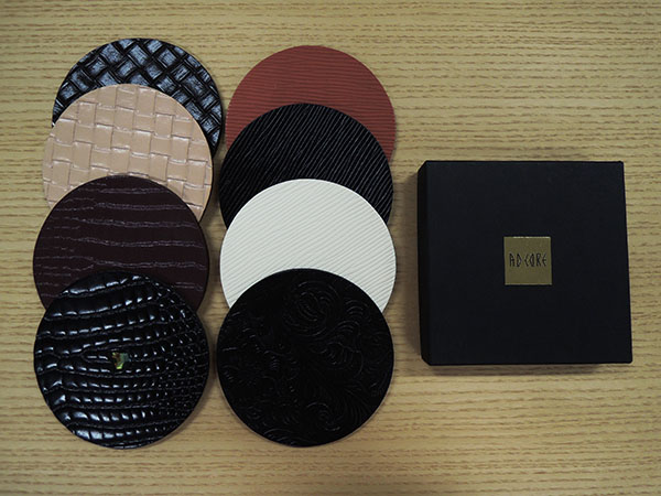 エーディコア・ディバイズのコースターは本革で厚みも十分!シンプルな色、柄などは飽きがこずに長年お使い頂けます。ワイン色やフラワー柄もありますが、本革なので派手になりすぎずインテリアのアクセントとしても最適です。ぜひ各ショールームにてお確かめください。ご来店お待ちしております。(ショールーム担当:青木 由紀子)