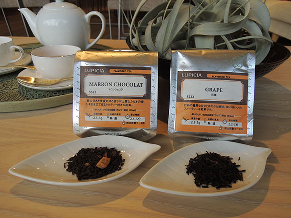 まず1つ目は『巨峰』の紅茶。紫色に輝く大粒の巨峰は、ブドウの中でも王様の風格。濃厚で豊潤な甘さに、ほのかな酸味が隠し味となり、深い味わいの紅茶です。フルーティな香りでお子様からも大人気で、こちらはリフレッシュした気持ちになれるので、スッキリ召し上がりになりたい方におすすめです。2つ目は渋皮のまま洋酒で煮含めた栗をイメージした紅茶『マロンショコラ』。ほっくりした栗の甘さと渋皮のほろ苦さで、上質なローストカカオの深い香りを引き立てます。こちらは、リラックスして、まったりと召し上がりになりたい方におすすめで、ミルクティーにしても美味しくいただけます。どちらも秋の香りを十分に漂わせていて、四季の移り変わりを味覚で感じられます。