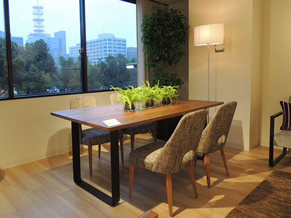 名古屋・栄ショールームでは初めての展示となる、チーク無垢材のテーブル。素材感を感じさせるうずくり加工の無垢天板に、ヴィンテージブラック仕上げのスチール脚部を組み合わせたシンプルな 『MD-607』とラウンドしたフォルムで身体を優しく包み込んでくれる『MD-501』チェアのセットや、優しく柔らかい掛け心地が特徴の『MD-505』ソファと楕円モチーフを組み合わせラウンドした『MD-502L』テーブルのセット。どちらもお越し頂いたお客様より大好評の商品です。ショールームにお越し頂いた際には商品のバリエーションや構造のお話など…もっと詳しくご説明させてください。
