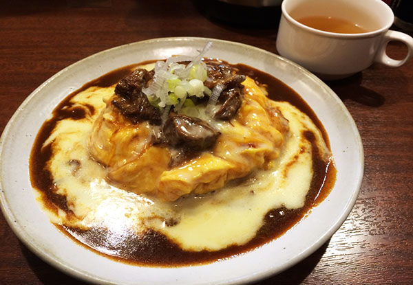 心斎橋商店街から少し入ったビルの1階にある「浪速オムライス」と言う一見普通のオムライス屋があります。お昼を過ぎた時間でも店内は満員!という、この辺りにはよくあるカウンターだけの小さなお店です。どこが「浪速」かと言うと、ケチャップライスを卵で包み、その上になんと「どて煮」がのっているんです。ちゃんとネギまでトッピングされていてます。見かけはボリューム感たっぷりでこってりに見えますが、ケチャップやデミグラスソースのオムライスより意外とあっさりしています。更に唐揚げやイカリングなど様々なトッピングもあってオリジナルなオムライスが楽しめます。もちろんふわふわ卵のみのプレーンなオムライスもあります。