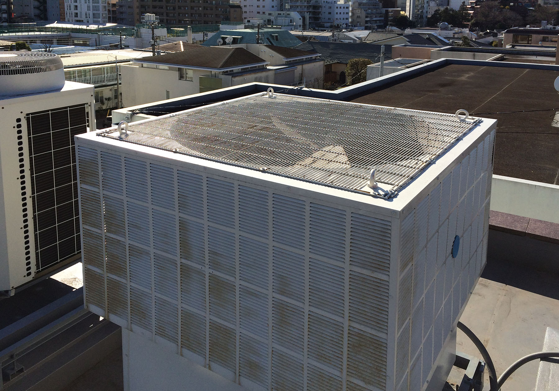 寒風吹きすさぶ中、吊りはしごから屋上に上ってみると一面シャーベット状の雪。オフィス階用の室外機の上には雪が積もり、下はカチカチに凍っていて吸気もままならない状態です。棒で氷を叩き割りながら、何とか雪を降ろし終えたのですが、羽に積もった雪が側面に凍り付いて停まったままです。バケツを屋上へ持って上がり水で氷を溶かそうとしますが、水が上手く届きません。こうなれば、、、ポットの熱湯をバケツに入れて屋上に登り羽に掛けてみます、、、が、氷が溶けるのは一瞬だけ。何度もそんな作業を繰り返し、ようやく氷が溶けたのですが羽は廻りません。ケースの隙間から棒を差し込んで、羽を動かそうともがいていると「パキっ」と言う音と共に、羽がゆっくり動き出しました。徐々にスピードを上げ、羽に付いた氷を振り払いながら回転も安定してきました。屋上から携帯電話で確認すると、オフィスの暖房も効き始めたようです。日暮れ前に、何とか復旧出来て一安心でした。