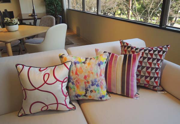インテリアコーディネートをする上で、日々お使いの家具の模様替えやイメージをチェンジすると言う事はなかなか難しいものですよね…。そこで活躍するのがクッションです。ショールームもクッションを春色にチェンジしただけで、随分華やかな印象になりました。インテリアもお洋服と同じように、差し色を持ってくる等、コーディネートするとイメージが変わります。
