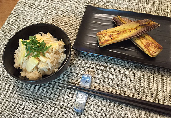 芽吹きの季節の到来とともに、エーディコア・ディバイズ東京・広尾ショールームにも“旬”が訪れます。ショールームの南側の庭に広尾界隈では珍しい竹林があるのですが、すくすくと成長した竹は3階まで伸びて日差しや視線を遮ってくれています。そして、この季節になるとタケノコがニョキッと顔を出します。成長するスピードには驚いてしまいます。毎年、何本か生えてきますが竹を増やしたいところは残し、その他は間引いています。今年は1本収穫し、採れたてをその日のうちに茹でました。先端部分はオリーブオイルを塗ってグリルで焼いていただきました。香りも高く、とても柔らかくて美味でした。新鮮なタケノコはえぐみもなく、タケノコご飯も美味しくいただきました。渋谷区広尾産のタケノコなんて、なかなか食べられませんね。春を感じる食卓になりました。