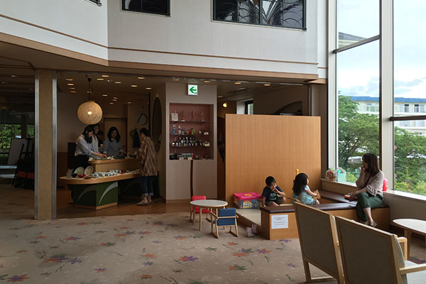 そのキッズコーナーはお土産コーナーの近くにあります。それまでも同じ場所にあったのですが、以前は絨毯の上にそのまま玩具が置かれ、間仕切りが無かったので、子供達がお土産に気を取られ、じっとしていませんでした。その為に、お土産コーナーと壁で仕切り、遊ぶ所を少し上げてクッション材を敷いてご両親の腰掛ける所を作り、和に合うようなデザインをしました。想定では、親御さんのどちらかが、チェックアウトの支払いをしてお土産を買っている間、お子さんがキッズコーナーで遊んでいて、それを優しく微笑みながら見ているもう一人の親御さんの姿です。その通りの使われ方を2組の家族が続けてされていて、本当に声を上げそうなくらい、嬉しくなってしまいました。松島の旅館ではお客様が以前以上に戻り、お手伝いした部屋も予約でずっと埋まっている事を聞いて、本当に良かったと思える仕事をさせていただいて、幸せな気持ちになりました。私自身デザイナーとして、お客様が使われている姿を見る機会はそんなにありません。それが、自分では想像できない小さなお子様が使っている姿ならなおさらです。