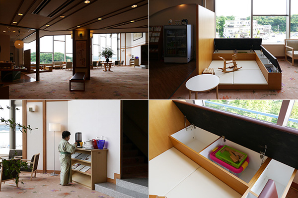 先日、久しぶりに東北の宮城県の松島にある旅館へ行きました。そこは震災後に家具だけの入れ替えのご相談を受け、お客様の使い方から提案して3年前に納入した旅館です。震災で津波の被害は無かったものの、建物本体の破損があり、オープンまで1年近くかかられた旅館でした。少しでも復興のお手伝いができればと、現地にお伺いしてロビーやラウンジなど共有スペースの入れ替えを提案しました。その後、客室を和室からベッドの部屋へなど少しずつお手伝いをしています。3年前のロビーとラウンジの家具では、ファミリーのお客様が過ごしやすい旅館にしたいとのご希望があり、特にロビー周りはチェックインやチェックアウトの時に、お年寄りの利用しやすいベンチや、小さなお子さんの遊ぶスペースなどをデザインしましたが、デザインホテルのような緊張感のあるしつらえではなく、全ての方が安心できるように心がけました。