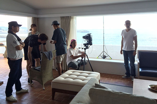 来月発表する今年の新製品を、1965年に設計された建築物で撮影を行いました。ディレクターの瀬戸が、不思議なアンテナで探し出してきたほとんど知られていない物件です。日本では旧い建築物は資産価値が無くなるため、貴重で素晴らしい建築物でも建て替えられてほとんど残らない状況にありますが、今回撮影を行なったこの建物は、奇跡的に一部水回りを増設しただけで、設計当初の状態をほぼ保ったまま使われていました。床や天井はもちろん、木製の窓枠(だいぶ建て付けが悪くなっていましたが)まで当時のまま。オーナー曰く「多少不便かもしれないが、出来るだけオリジナルのまま」お使いになっているそうです。その建築は、外観も内装も派手さが無く天井も高くないのですが、これまでカタログ撮影で見てきた様々な西海岸の住宅には無い、日本的なモダニズムを感じました。壁面コーナーの微妙な曲面やエントランスに設けた天窓からの光など、上手く説明が出来ないのですが、派手さや豪華さではなく、端正で控えめなディテールにこだわった心地良い空間がそこにはありました。もちろん眼下に広がる湘南の海も、心地の良い空間の大切なファクターの一つだと思います。