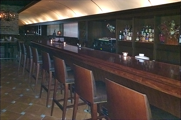 圧巻の一枚板のカウンタートップの前には、揃いの材料で肘置きが設えてあります。酔ったお客様が肘をついたりもたれかかったり、お酒を飲む姿が様になるように設えたのだそうです。ドーム型の天井には、影が映り込まない角度で照明を当てたり、店内全ての照明がそれぞれ調光出来るようにしてあるなど、隅々にまでこだわりを感じます。ふと気がつくと、このお店には飲食店特有の「臭い」がしません。アロマを炊いている訳でもありません。煙草の臭いもしないと思ったら全席禁煙!!更なるこだわりを感じました。