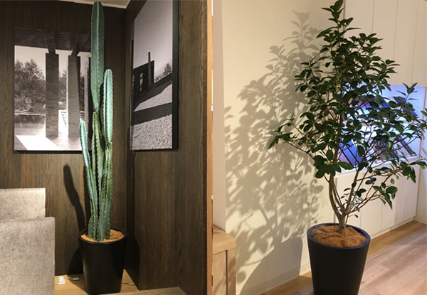 エーディコア・ディバイズ各ショールームではシーン毎のイメージや商品テーマに沿って観葉植物のセレクトをしています。最近ではインテリアには欠かせない存在の観葉植物。お部屋にも家具にもマッチする植物は空間を引き立たせてくれます。植物には、癒しや安らぎの効果もあるので、是非取り入れてみてはいかがでしょうか?