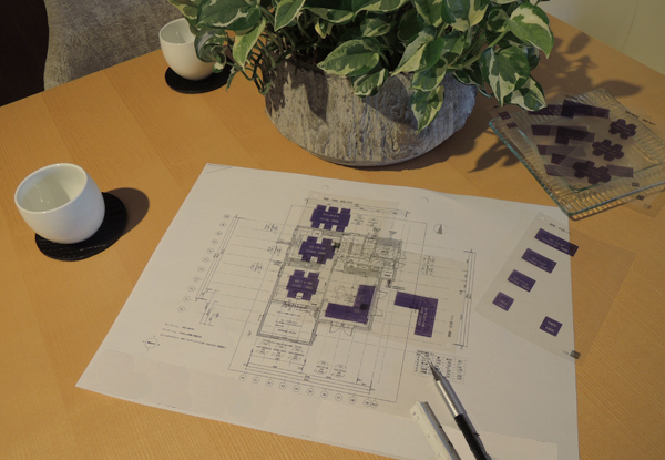 空間の使い方や家族構成、ライフスタイルに合わせた家具選びのお手伝いをさせていただきますので、ご来場の際に、お好きなインテリアのイメージ写真やお部屋の平面図を、お持ち頂くとご相談がスムーズに進みます。実際にショールームでは1/50のサイズの家具プレートを、お手持ちの図面に置きながら、サイズ感やレイアウトプランを、お打ち合わせさせていただきます。ご要望に応じてプランニングのイメージボードの作成も致しますので、お気軽にご相談ください。