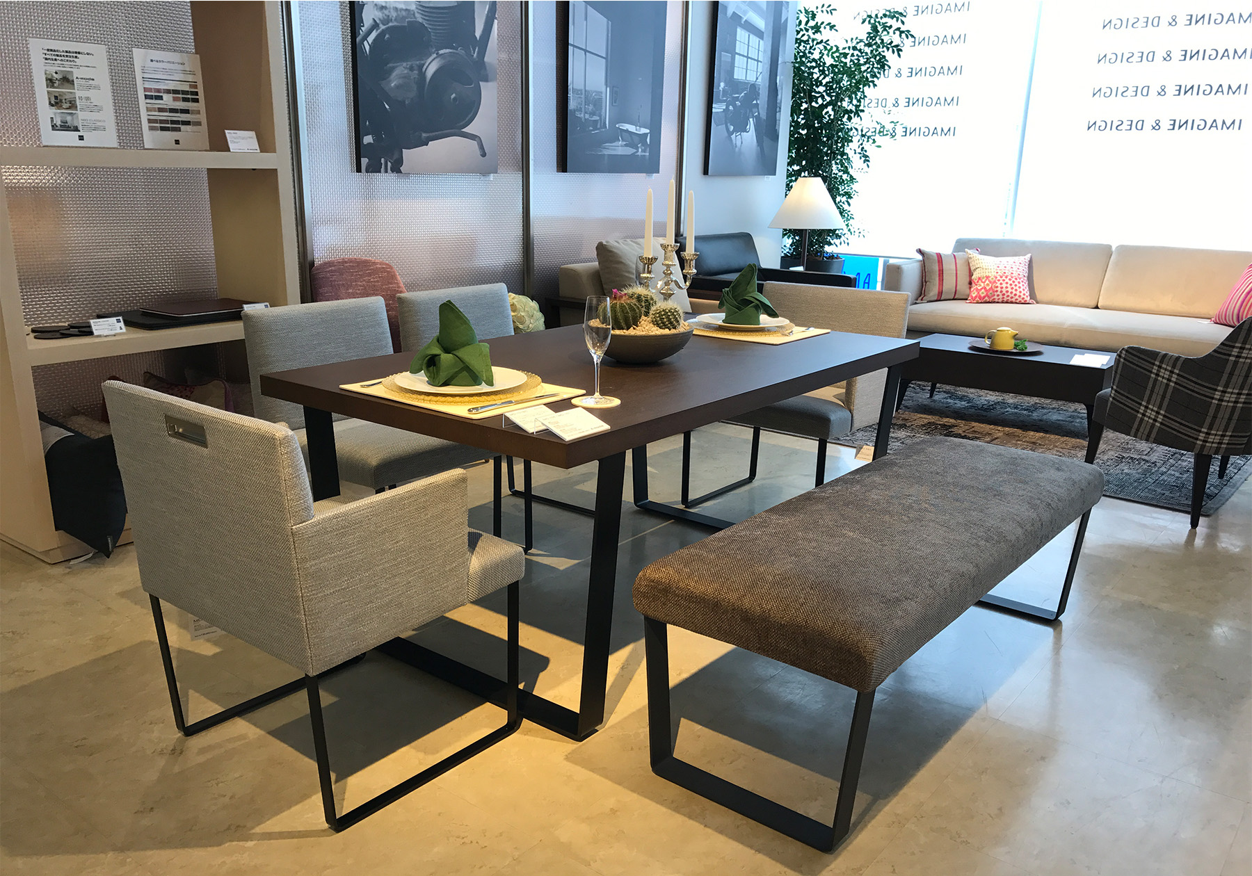 ここ最近すっかり春らしく暖かくなりましたね。エーディコア・ディバイズ大阪・心斎橋ショールームでは、グリーンやイエローを取り入れたディスプレイを展開しています。展示品のソファもクッションカバーを春仕様の明るい色に交換をしてみました。
