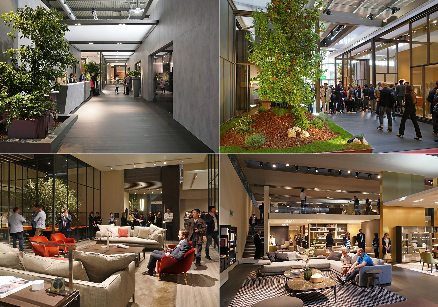 VIP用エリアは空いていてゆっくり見て座る事は出来ますが、一般用エリアは混んでいて、座る事も見る事もなかなかできません。私はプレスカウンターで申請して、中でゆっくり写真を撮り座る事は出来たのですが、ミノッティではいつもの広報担当が辞めてしまい、日本の代理店を通せと入らせてもらえませんでした。そこで、一般用エリアに入ったのですが、人混みの中で製品を見る事は出来ませんでした。この手法を取るブースの中には、VIP用のエリアが一般の倍の広さの所もあり、本当に今の飛行機の中のビジネスクラスのようです。ブランドの中には展示ブースをガラス張りにして、その外で展示だけは見られる所もあり、中にいて写真を撮っていると、ガラス外からの視線を感じ、動物園の動物になったような気持ちになりました。混雑している一般ブースを見ると入れて良かったと優越感にも浸れますが、なんだか人を差別してるようで、デザイナーとしては、複雑な気持ちになります。でも、この人出では、商談など売上げに直結する見本市会場では購入していただくお客様をより大切にする事は仕方ないかなとも思います。
