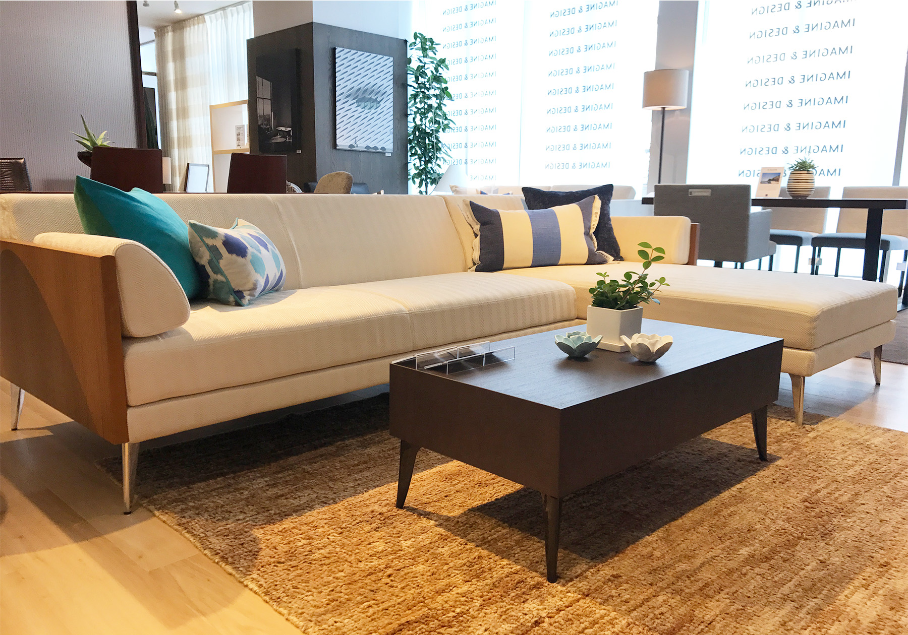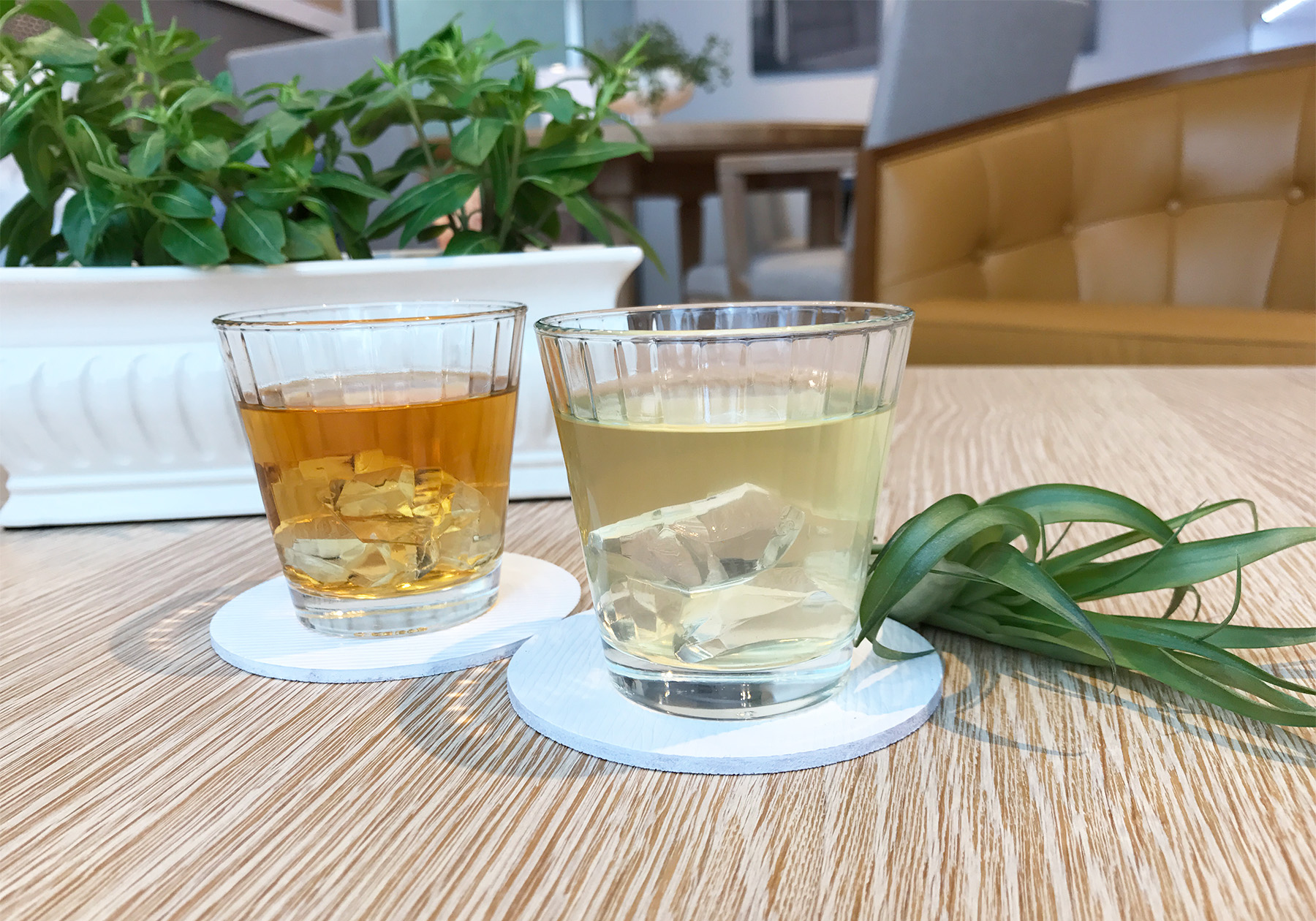 暑い日が続いていますが、各ショールームではブルーやホワイトのクッションやディスプレイを取り入れ、涼しげな夏仕様の装いで皆様をお迎えしています。お出ししているフレーバーティーも、爽やかな気分になっていただけるよう柑橘系を中心にフルーツ系のフレーバーをご用意しています。