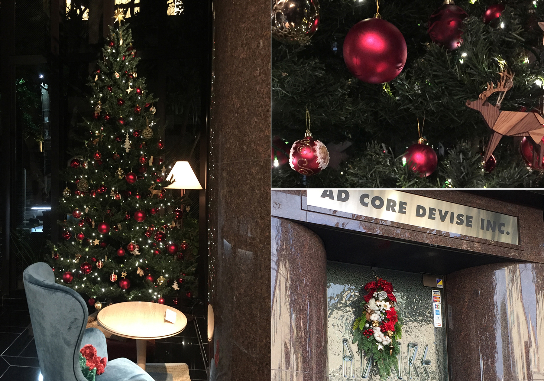秋のイベントが終了し、街が華やかに彩られる季節になりました。あちらこちらでイルミネーションやクリスマスツリーが見られ、楽しい気分になりますね。エーディコア・ディバイズ東京・広尾ショールームでも、エントランスにクリスマスツリーを飾りました。