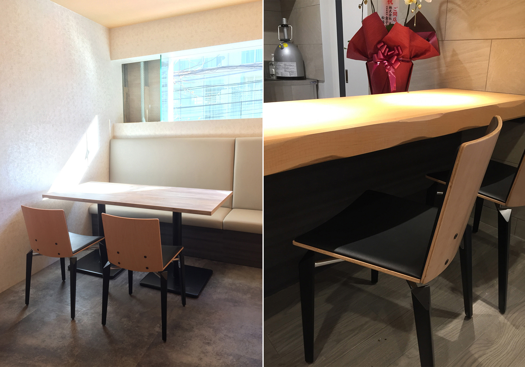 そんな中、先日、代官山のフレンチレストランにチェアを納品させていただきました。オーナーシェフはご自宅でも当社のダイニングセットをお使いいただいていて、今回、フレンチレストランをオープンするにあたり、相談にいらして下さいました。いろいろとお試し頂き、気に入って下さったのがCERVO(AD-861DA)です。Simplicité(単純な、簡素な)という店名のイメージにもピッタリな、座が浮遊したような軽やかでシンプルなデザインが特徴のチェアです。内装パースを拝見させていただいたり、お話を伺いながらチェアの色や素材をアドバイスさせていただきました。また、オープンキッチンが見えるカウンターやテーブルはすでにご用意されておりましたので、テーブルとチェアの高さ関係等も入念にお打ち合わせさせていただきました。特にフレンチはフォークとナイフでお食事されますので、高さのバランスが悪いとお食事しにくいので、細かい配慮が必要です。納品当日は、1月2日のオープンに向けて内装の仕上げや準備の最中でした。お選びいただいたチェアの色もお店の雰囲気にマッチしていて、オーナーも大変喜んでくださいました。この空間でどんなお料理が提供されるのか楽しみです。