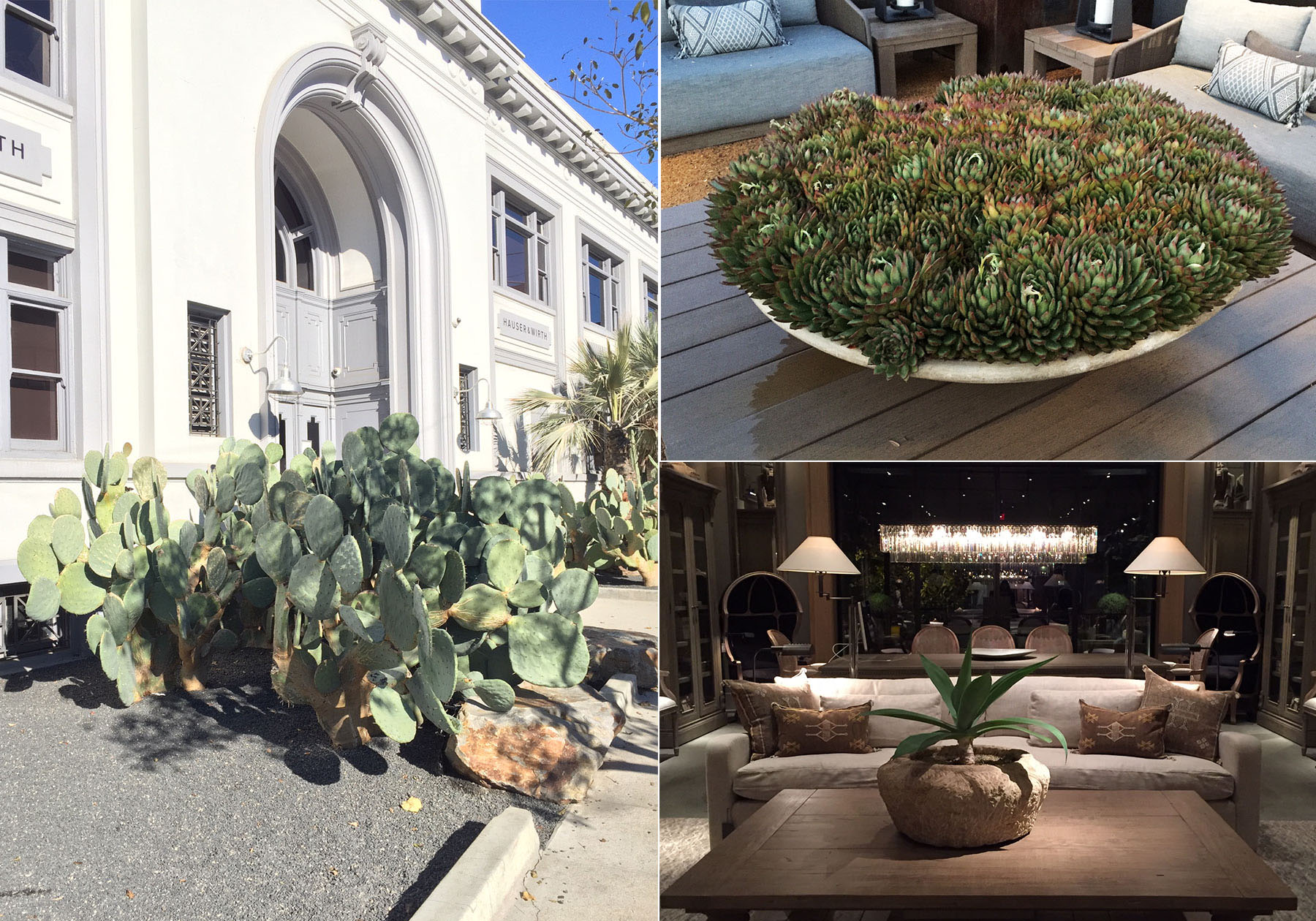 また、街を歩いていて驚くのは、サボテンや観葉植物の大きさです。日本では見たこともない大きさで、圧倒されてしまいます。視察で伺った住宅やインテリアショールームでも、多肉植物や観葉植物はよくディスプレイに使われていました。ショールーム担当としては、植物と花器のコーディネートや植え方などとても参考になりました。多肉植物はショールームのディスプレイで利用するのですが、梅雨の時期に駄目になってしまうことが多く、乾燥している西海岸ならではだなぁと羨ましくも思いました。今回の視察ツアーで学んできたことを、ショールームにも活かして皆様にお伝えしていきたいと思います。
