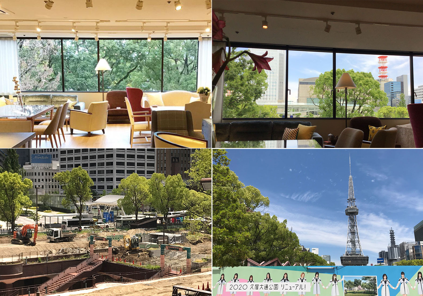 エーディコア・ディバイズ 名古屋・栄ショールームの前にある久屋大通公園も今年の1月から工事が始まり、東京オリンピック直前の2020年7月オープンに向けリニューアル中です。リニューアル後には公園が3つのエリアに分けられます。豊富なグリーンを活かした落ち着きのある憩いの空間になる『都会のやすらぎ空間』、テレビ塔周辺を観光化し、多くの人が交流できる『観光・交流空間』、イベントが開催され来訪者が楽しむことのできる『にぎわいの空間』とショールーム前の街並みも更に賑わいをみせる場所となるのでとても楽しみです。ショールームの窓からは、リニューアルの様子がよく見え、工事が進んでいる変化を感じます。一番の変化はショールームの窓から見える景色です。今まではグリーンのカーテンで覆われていましたが、今は街の様子がよく見えるようになりお昼にはオアシス21の広場で遊ぶ子供たちの様子や、夜はバスターミナルがライトアップされている様子がよく見えてとても綺麗です。