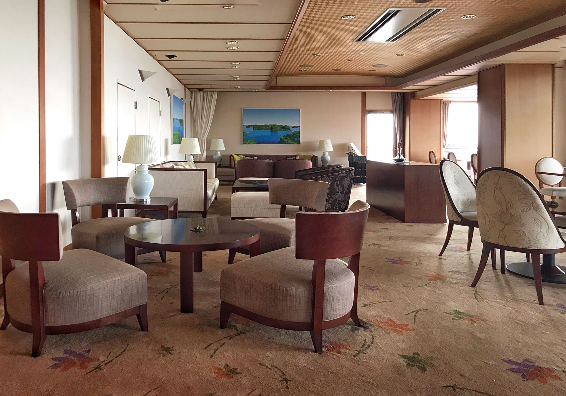 僕はお盆休みを利用して、宮城県の松島にある温泉旅館「小松館 好風亭」へ行ってまいりました。こちらの旅館は、震災後の家具のリニューアルの依頼をいただき、内装は変えずに家具を入れ替えることでロビーとラウンジスペースのインテリアを一新した物件です。お客様からも大変好評で、その後も客室やドレッサールームにも当社の家具を納めさせていただきました。エーディコア・ディバイズのHPには「WORKS」のクリック欄があり、当社の家具を納めた納入事例の物件が項目ごとに掲載されています。もちろん小松館も紹介させていただいていて、知人やお世話になっている方々に宿泊いただいているのですが、皆さん絶賛されている旅館です。僕は仕事や研修でしか利用させていただいたことがなかったのですが、プライベートで訪れると温泉もお料理も味わいが別格でした。何度か訪れているロビーやラウンジも雰囲気が違って見えるから不思議です。とても素晴らしい旅館ですのでぜひ一度訪れてみてはいかがでしょうか。