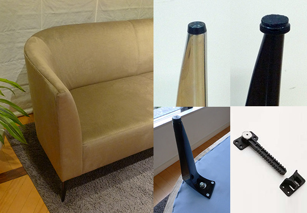 ミニマムサイズに仕上げたソファは、2P・3P・コーナー・オットマンを用意しました。2Pソファには片アームとアームレスの2タイプ、コーナーソファには90度タイプと120度の2タイプにより色々な組合せが可能、空間を選ばず様々なシーンに対応できます。座面下には連結パーツを取付けてあり、組み合わせたソファがずれないようにしっかりと固定できます。座面ベースにはウエーブスプリングとソフトワイヤースプリングを使用。ミニマムなサイズでもホールド感のあるしっかりとした使用感を実現しました。またコーナーソファのコーナ部分でもゆったり座れるように、半円の両サイドを伸ばしたかたちで仕上げています。オットマンも場所を選ばない丸タイプとフットレストにもなる半円タイプを用意しました。脚は黒とポリッシュのアルミ脚により、フォーマルな印象を持たせ、オプションとして脚先をフェルトベースに交換することができます。